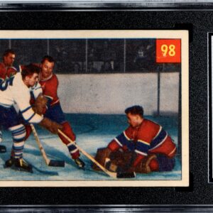 1954-55 Parkhurst #98 Plante Protects Against Slippery Sloan (SGC 1.5)
