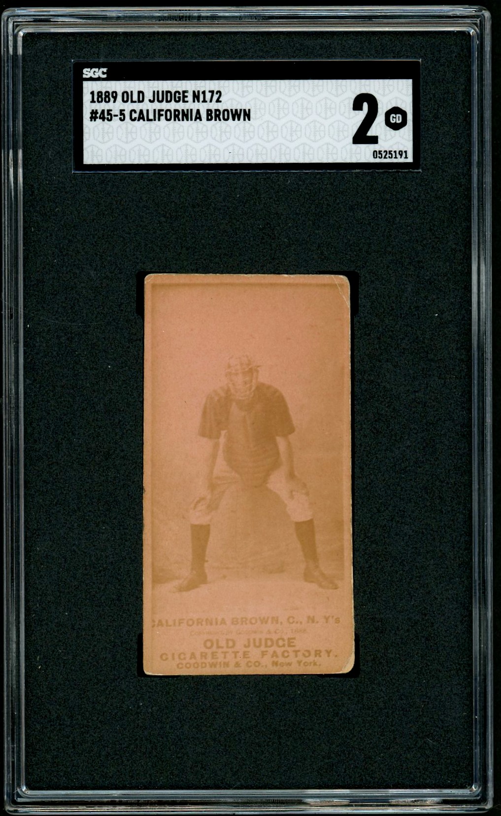From the massive early Old Judge set, this is catcher “California” Brown, a member of the New York Giants. This classic set has over 500 players in a variety of poses that push the number of cards in the set to over 4,000. This is 1 of 2 with 3 graded higher among the only 13 graded by SGC.
