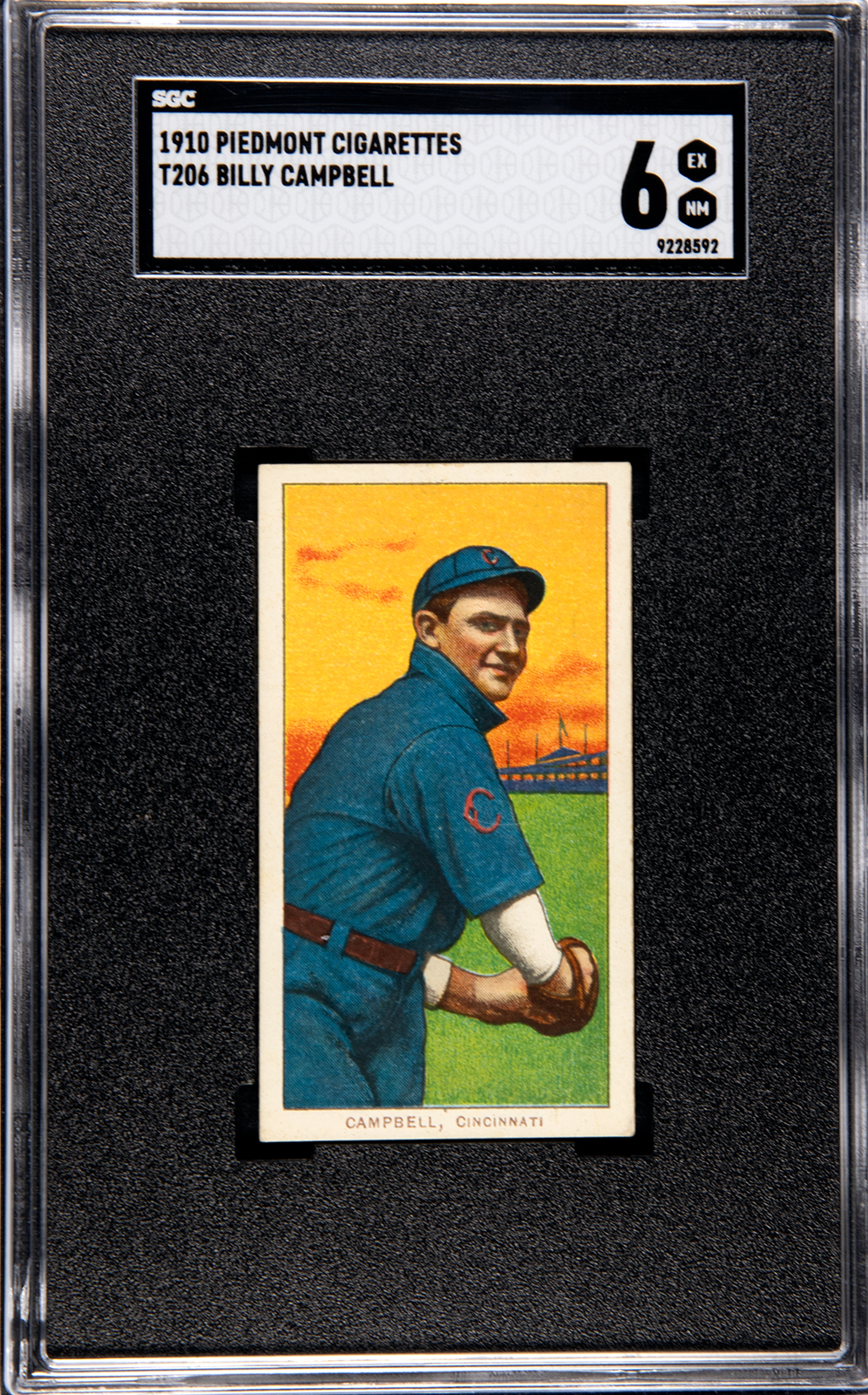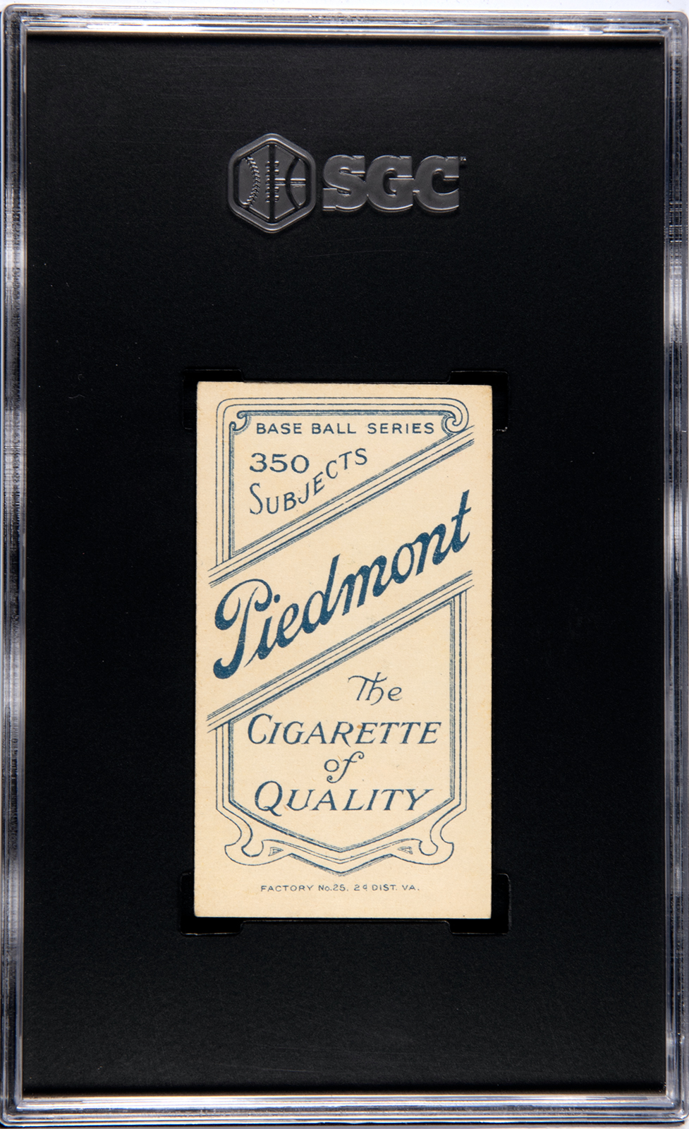 Absolutely stunning tobacco card.  Billy Campbell was a left-handed pitcher who played 13 pro seasons, with four of them at the big-league level.  This card is favored by collectors thanks to the incredible colors used in the card’s design.  This is 1 of 5, with none graded higher among the 197 Piedmont 350/25 Campbell’s graded by SGC.  PSA shows 248 examples, with only 4 graded higher.