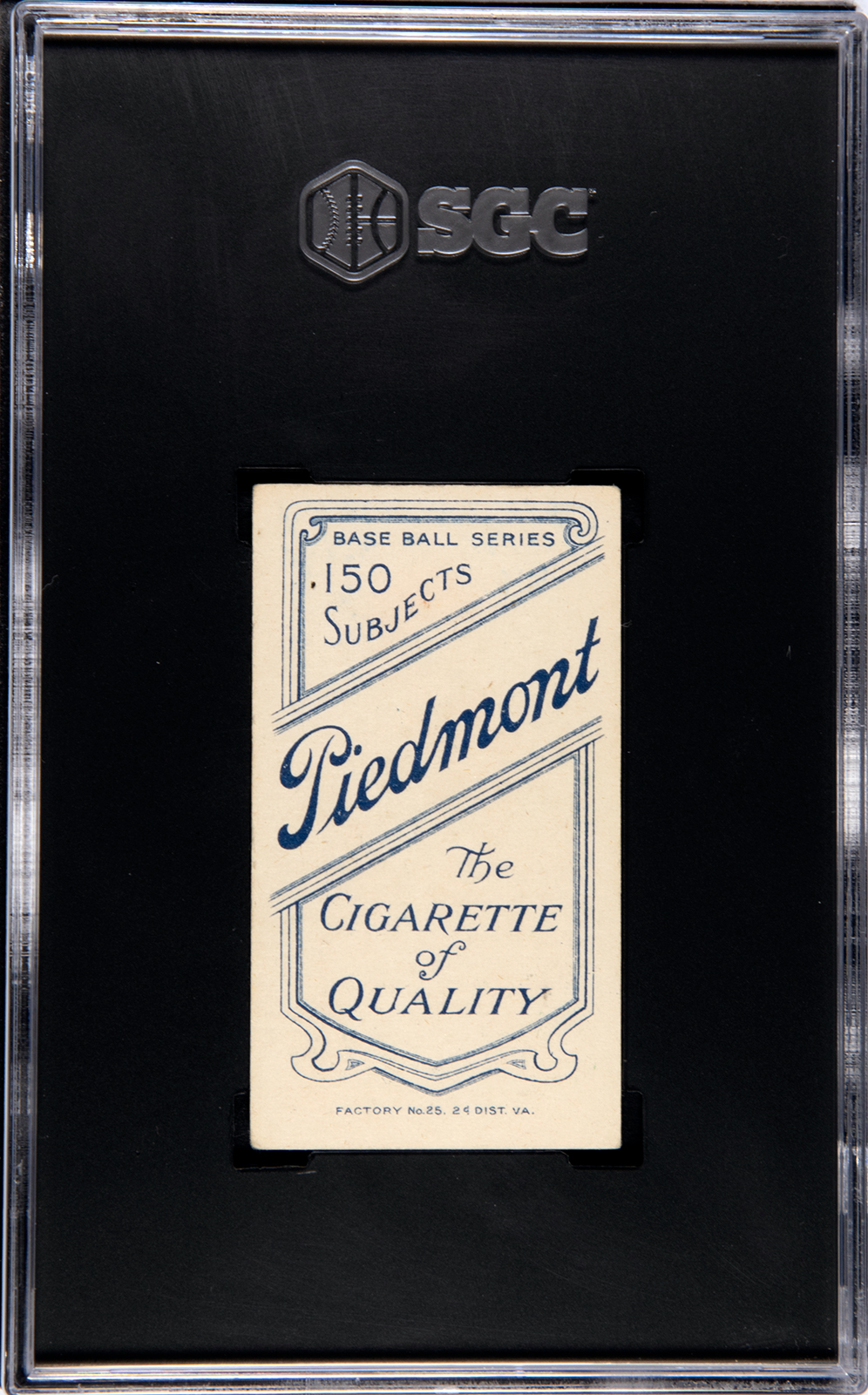 Issued in 1909, with the Piedmont 150/25 back, this is a low pop card, 1 of 1, with only 4 higher, of the 130 graded by SGC.