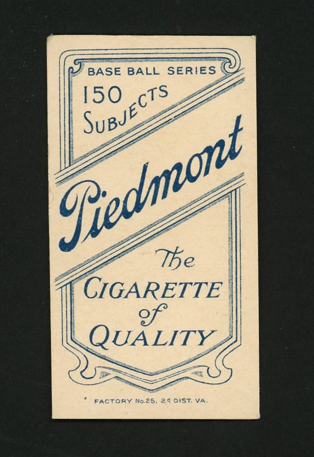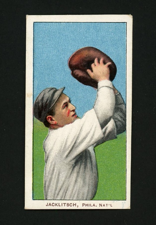 Jacklitsch was a catcher/outfielder who played 20 seasons of organized baseball, including 13 at the major league level. This one has the Piedmont 150 back (1909 issue).