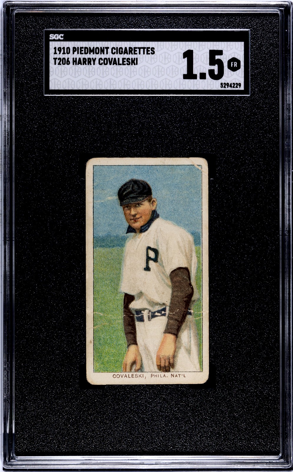 Brother of HOF pitcher Stan Coveleski, Harry was a pretty good hurler in his own right. He had a brief cup of coffee in the majors, went down the minors where he honed his craft, went 28-9 in 1913 and earned another shot in the majors at the age of 28. From 1914- to 1916, he would win 20+ games per season (22, 22, 21), throw 300+ innings, and post three sub-par ERAs in that span (low of 1.97 in 1916). This is an uncorrected error as well with his last name misspelled on the card, with a Piedmont 350/25 back.