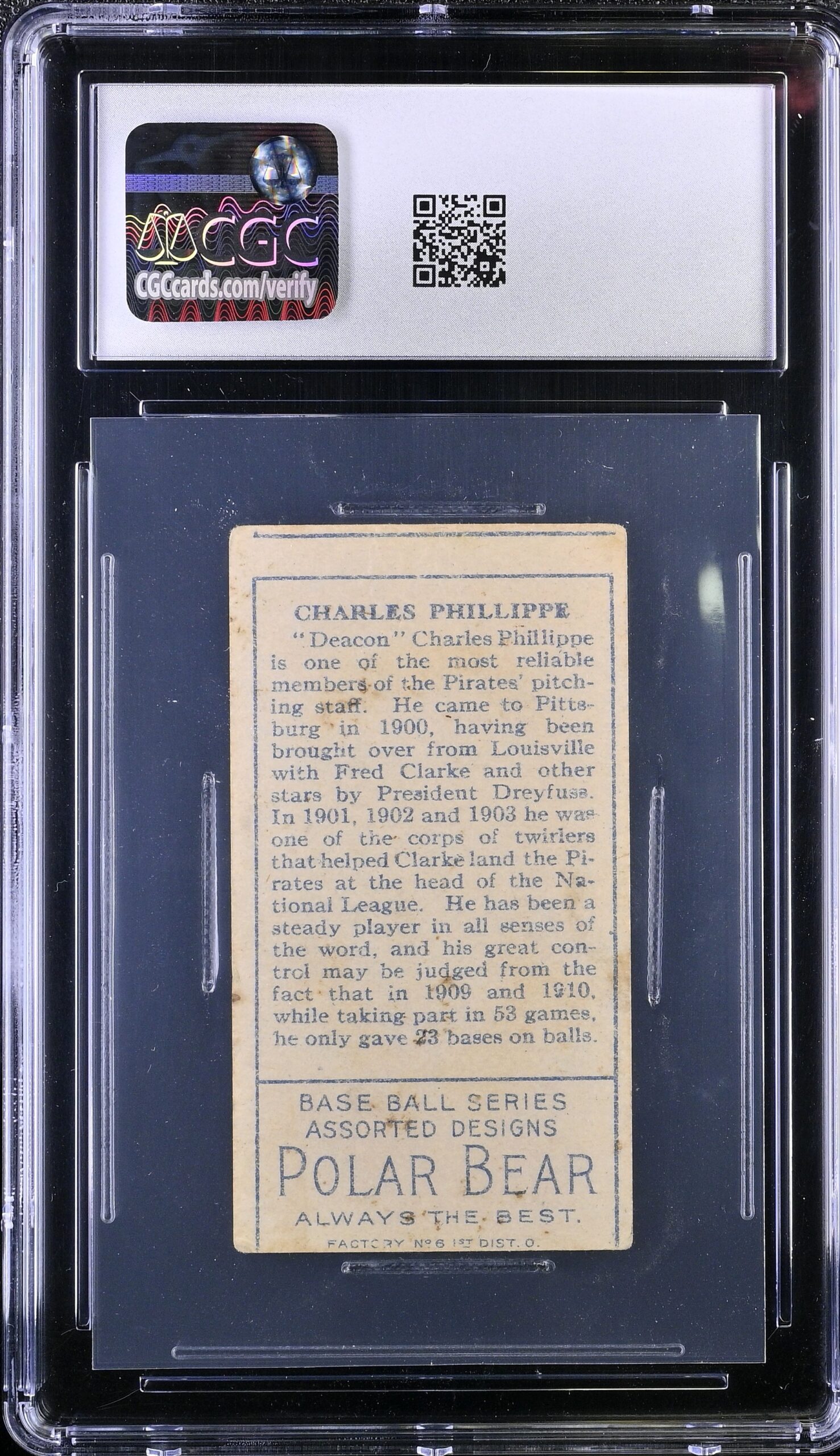 Phillippe was a superb pitcher over 13 seasons, mainly with the Pittsburgh Pirates. He won 20 games or more 6 times in his first 7 seasons, including a 25-9 season in 1903. In 1909 he won a World Series as the Honus Wagner-led Pirates beat Ty Cobb and the Detroit Tigers, and in 1910 he went 14-2 to lead the majors with an .875 winning percentage. With a relatively clean Polar Bear back.
