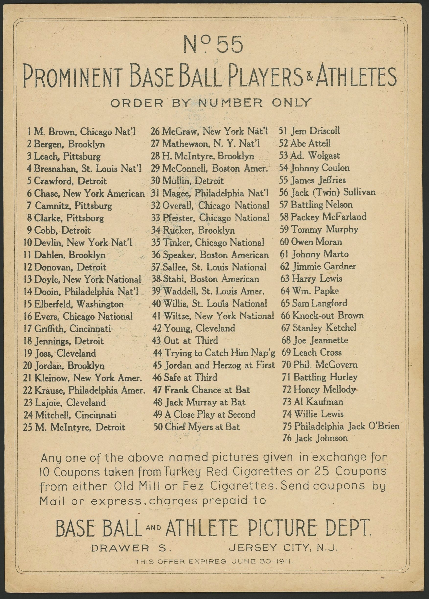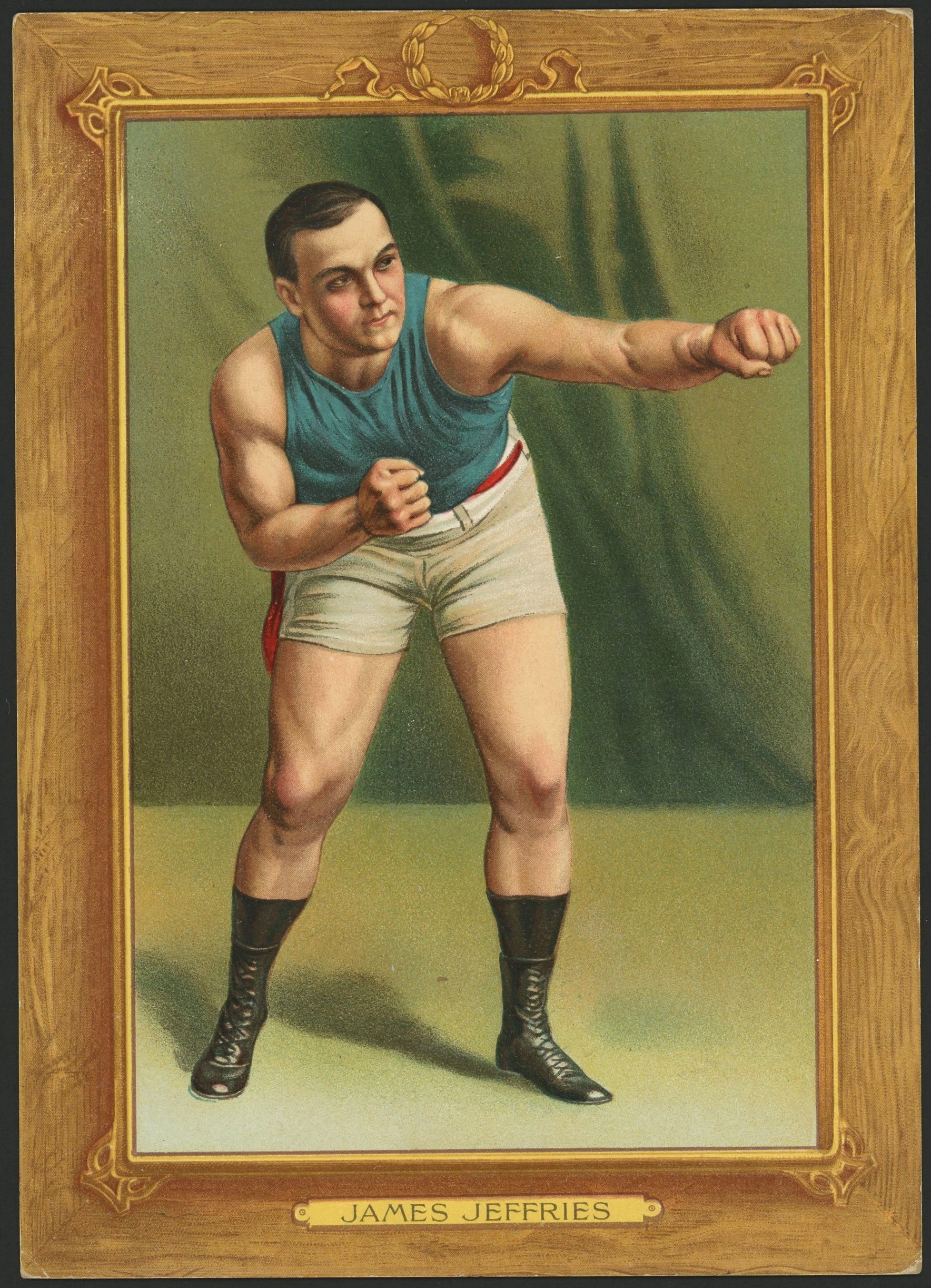 Amazing Turkey Red cabinet card (5 3/4″ x 8″) featuring boxing HOF heavyweight, James Jeffries. In nice VG/VG-EX condition, with wear to the corners, otherwise clean, crease free, with superior colors. Stunning example!