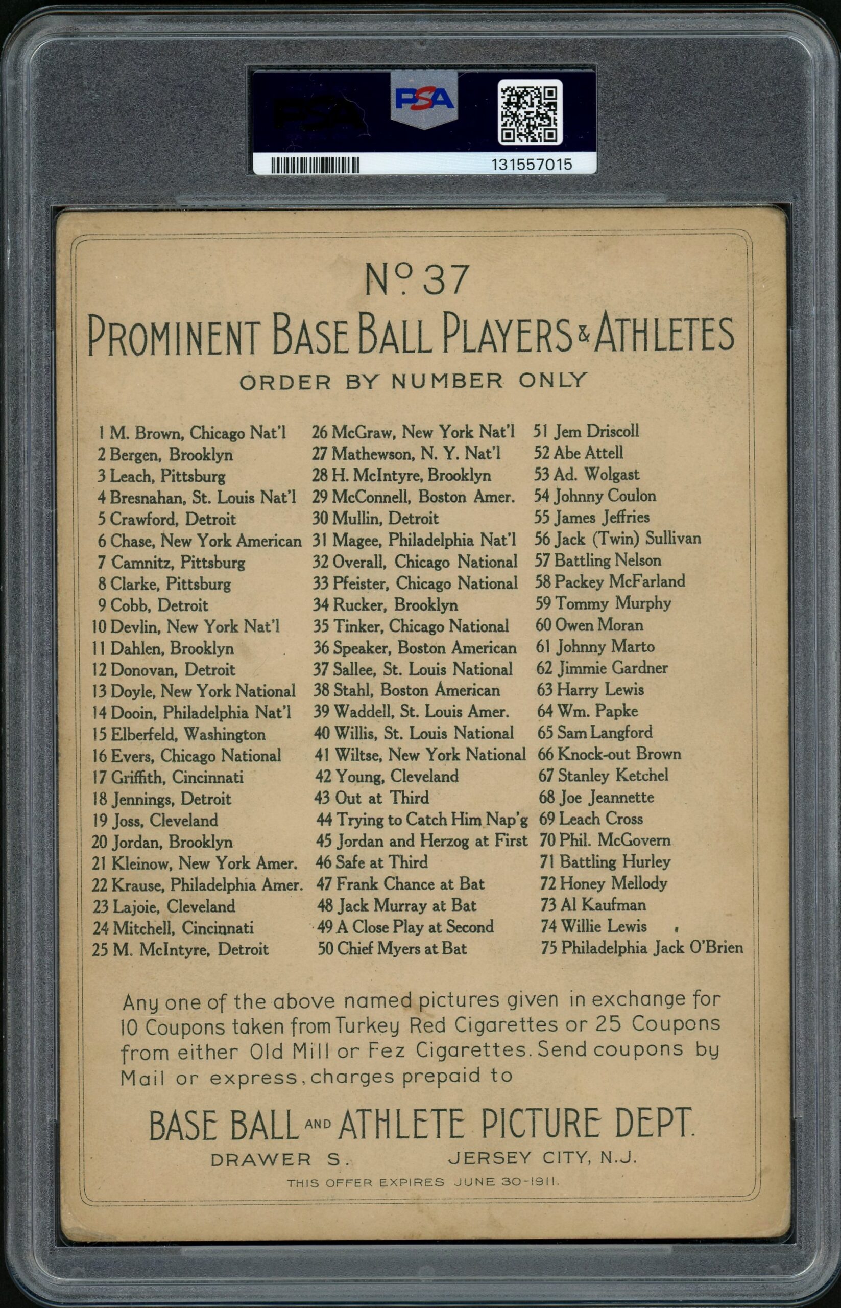 Be the first to review “1911 T3 Turkey Red #37 Slim Sallee (PSA 2.5)”