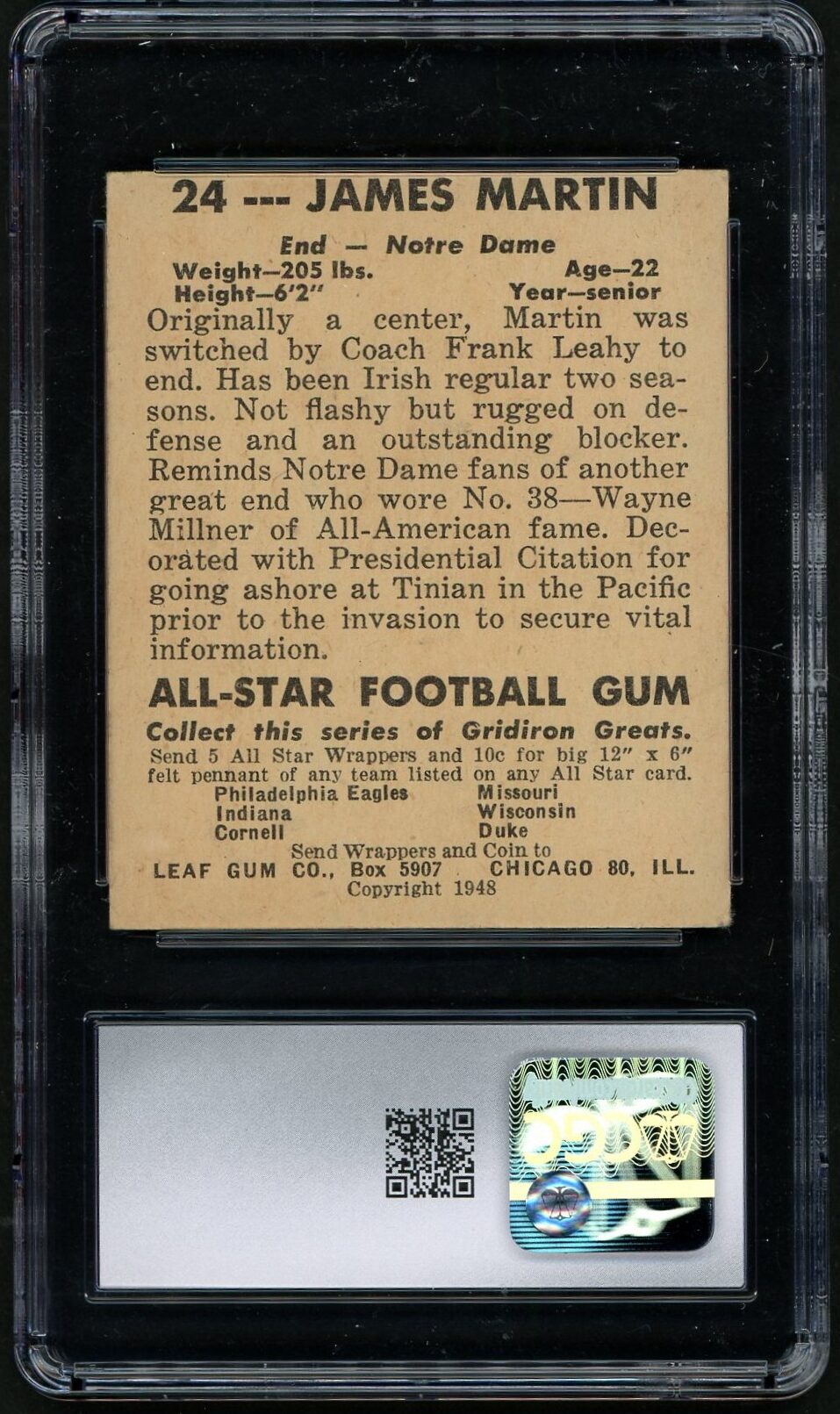 1948 Leaf #24 Jim Martin RC (CGC 4.5)