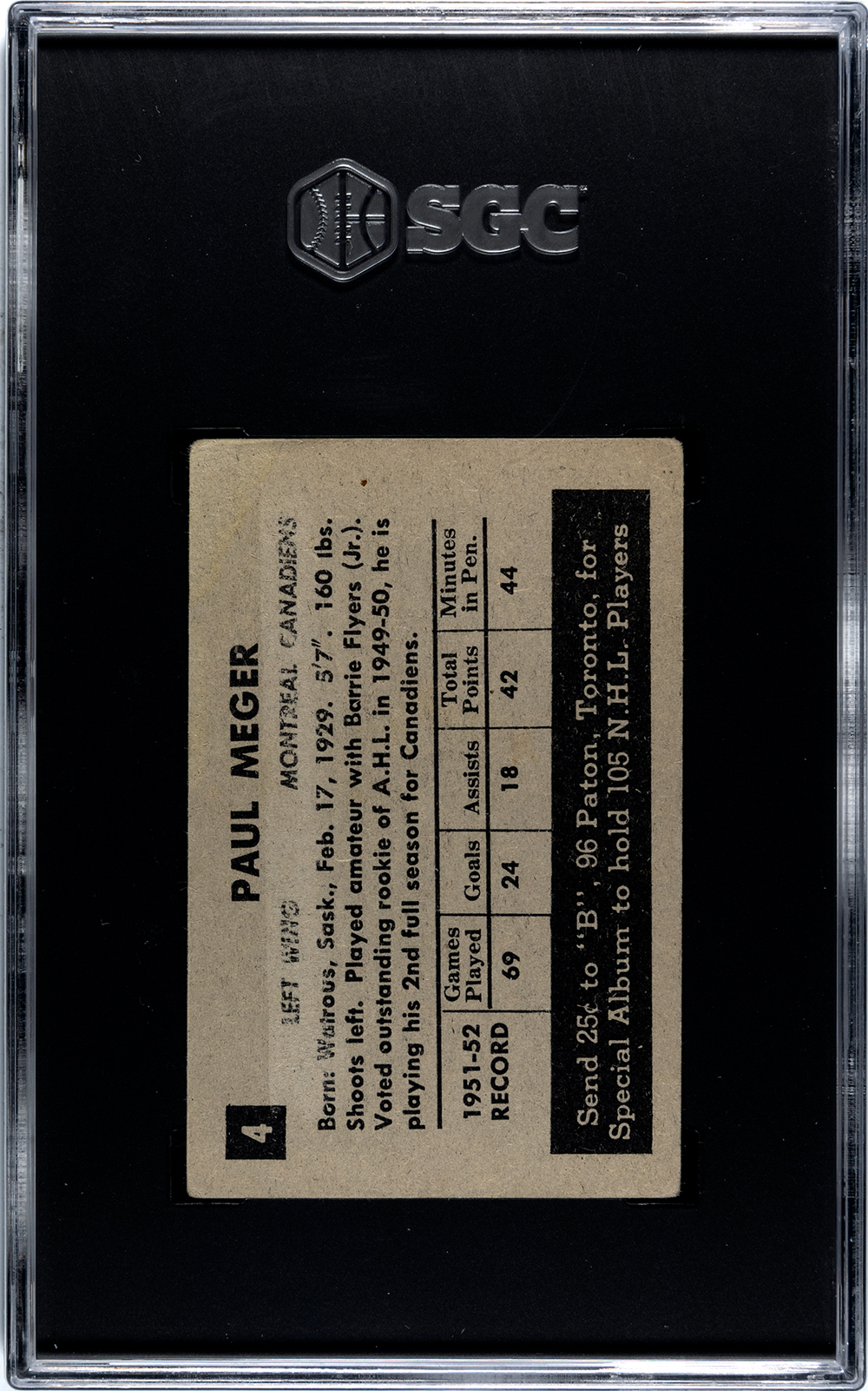 Off-grade example of Montreal Canadiens winger, Paul Meger.