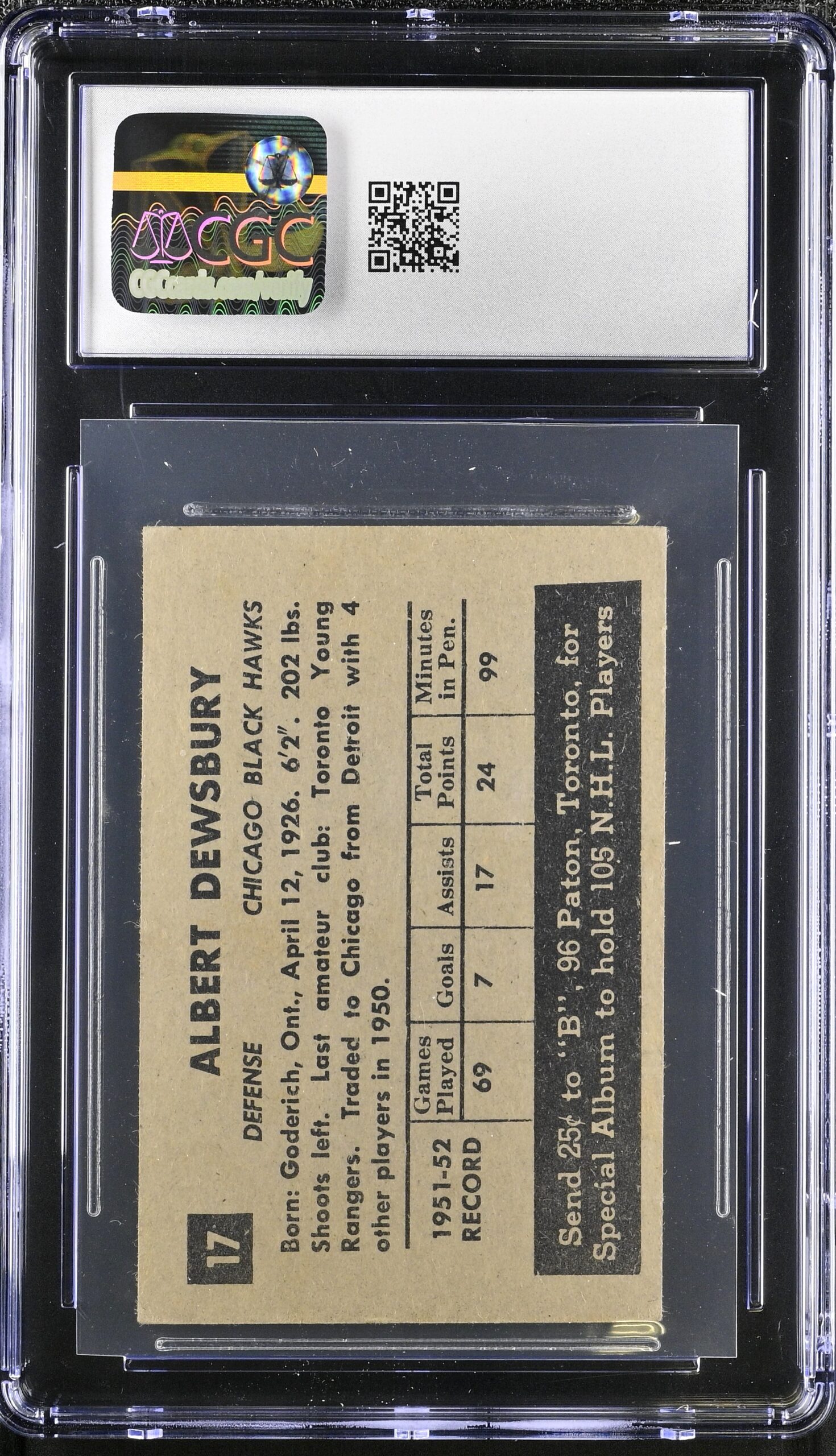 1952-53 Parkhurst #17 Al Dewsbury (CGC 5)