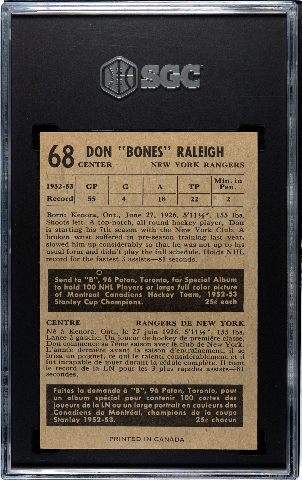 “Bones” Raleigh played 10 productive seasons with the Rangers and was a top-5 vote getter for the Lady Byng three times, finishing runner-up in 1954.
