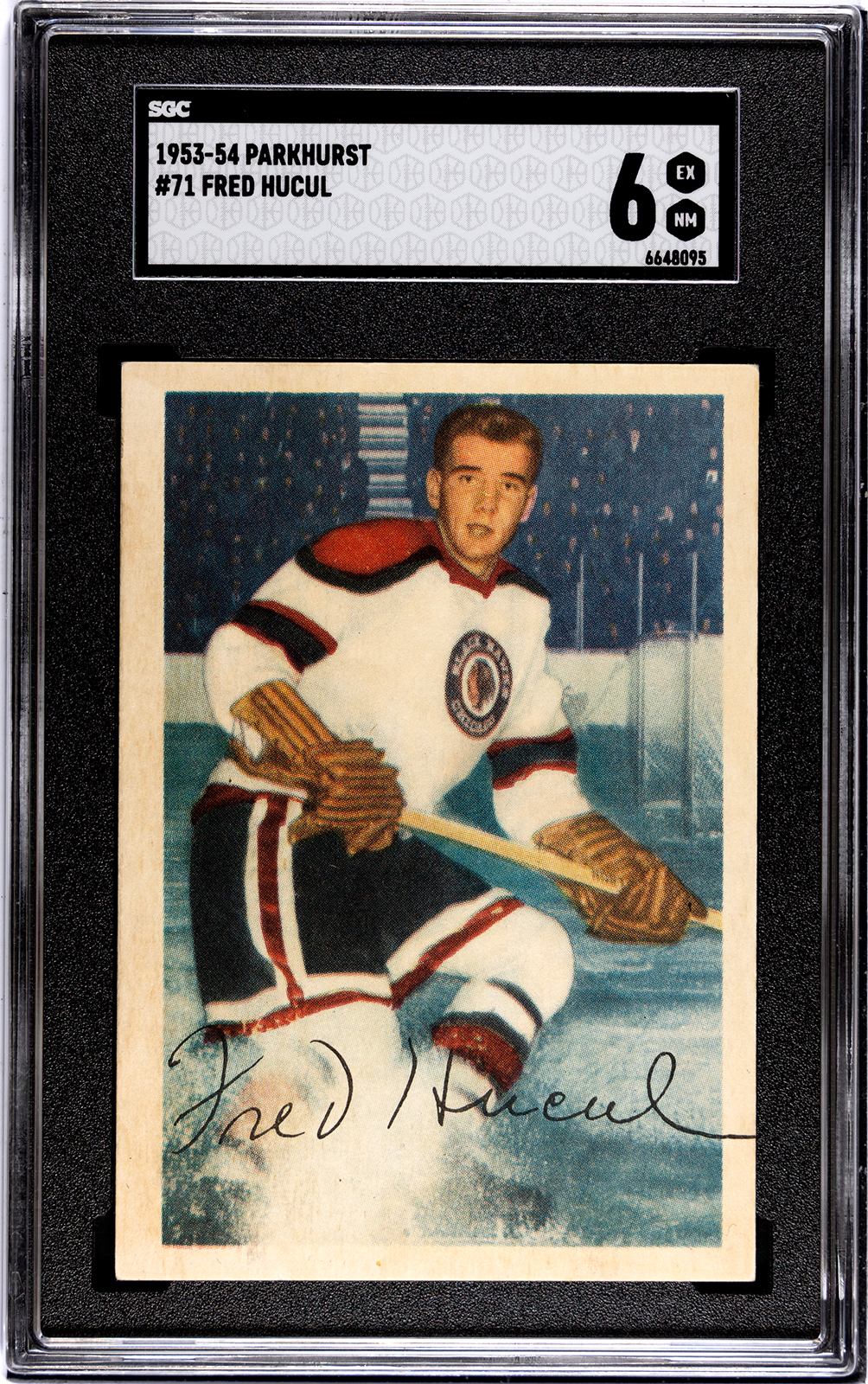Hucul broke in with Chicago during 1950-51 season and split the next few years shuffling back and forth to the minors. During 1953-54 season he would embark on a long minor league career in which he won championships in the QHL (Quebec, 1954) and in the WHL (Victoria, 1966). When expansion came to the NHL, he would play 65 games for the St. Louis Blues in 1967-68.