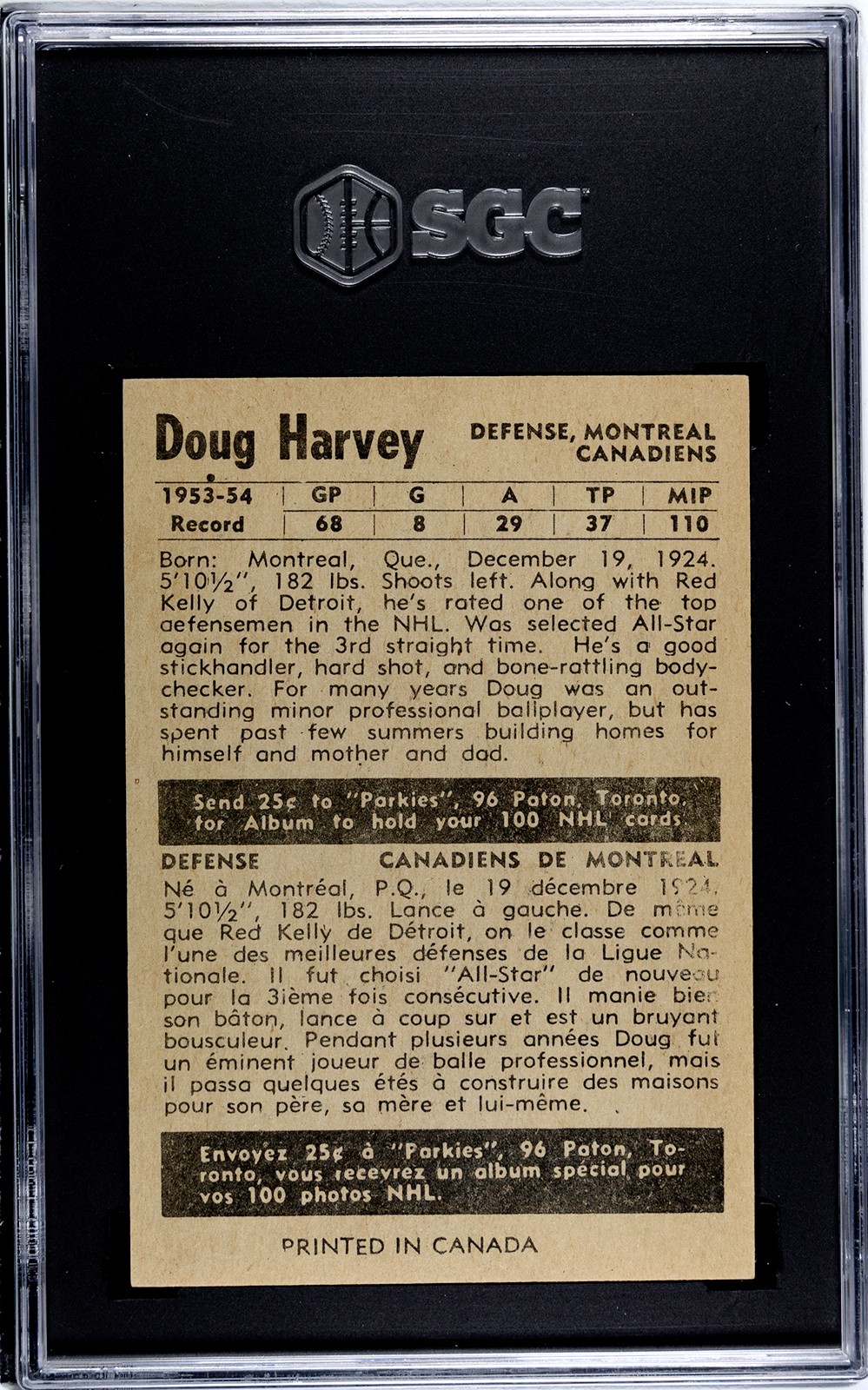 Great card of HOF defenseman and one of the all-time greats at that position, Doug Harvey.