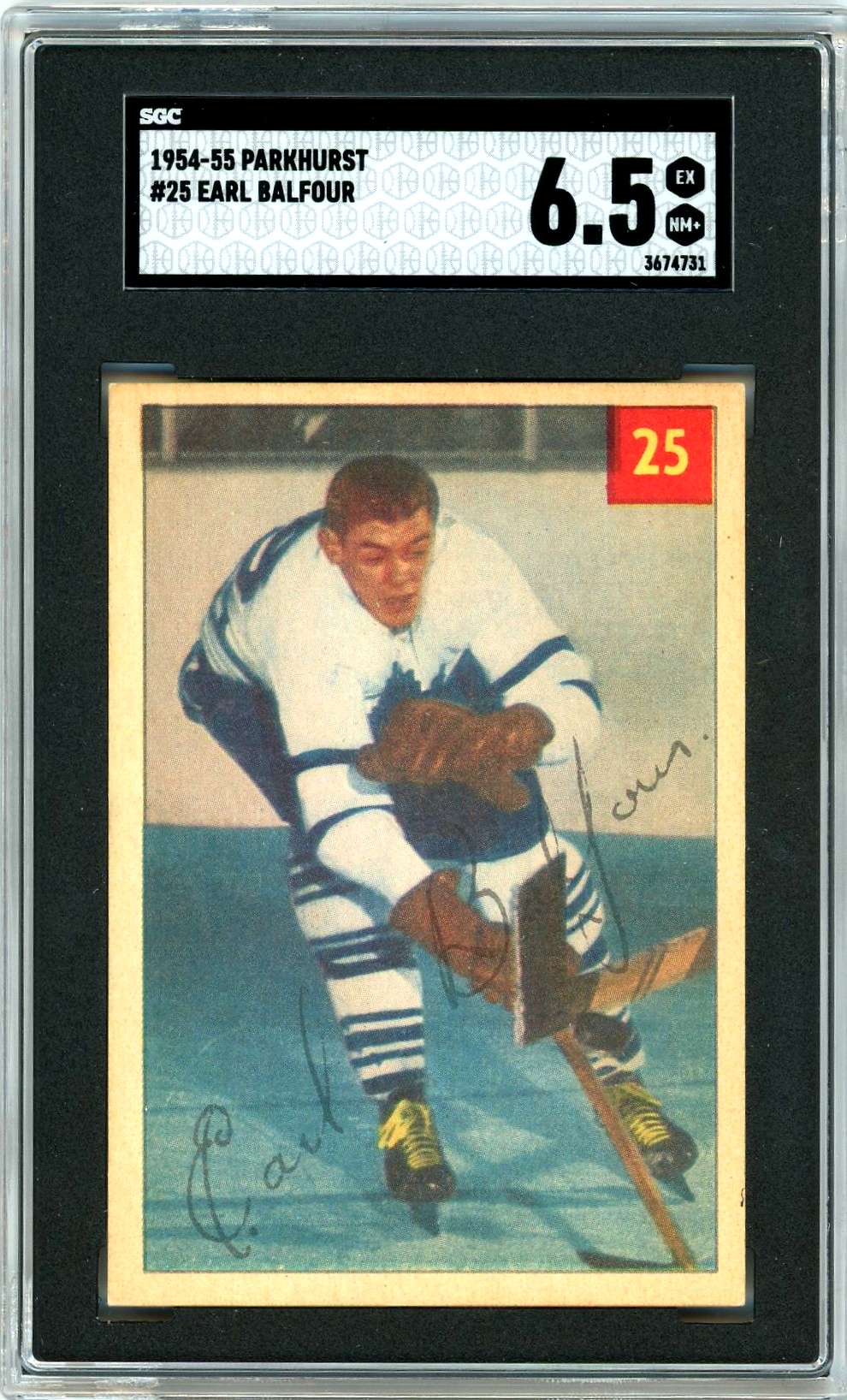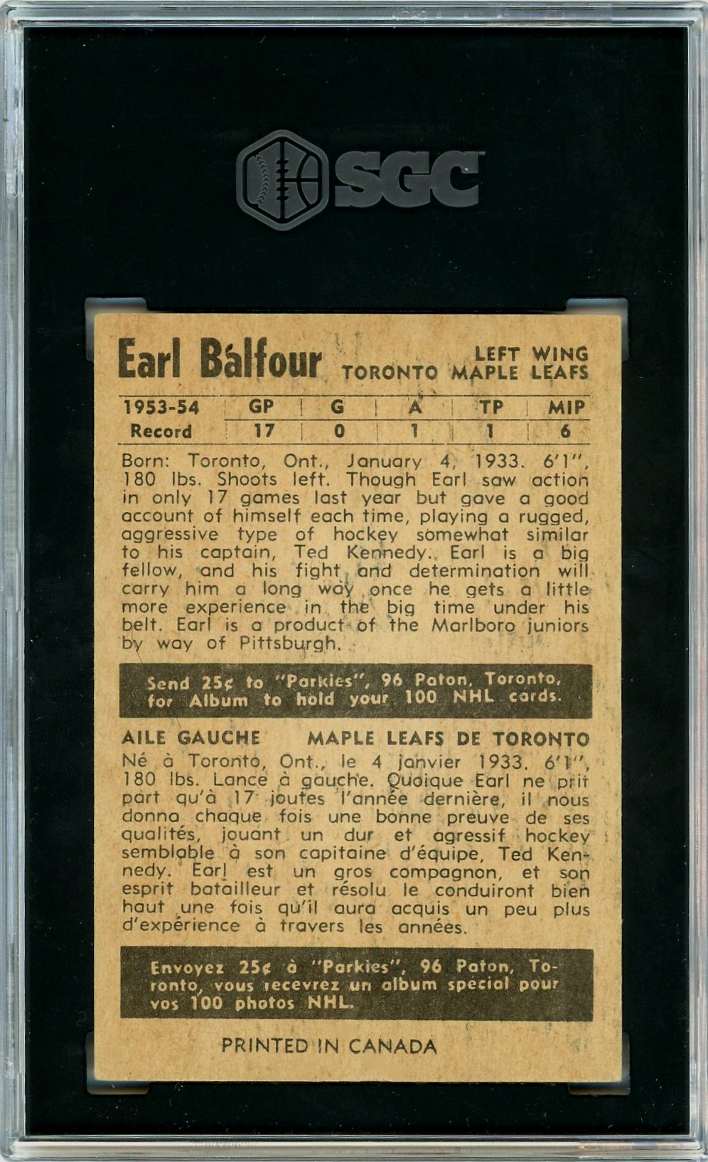 Sharp rookie card of Earl Balfour, who played five NHL seasons, winning a Stanley Cup with Chicago, and a few more in the high minors where also won a league title in the AHL.
