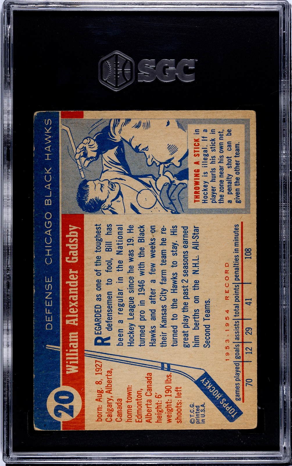 Clean card of HOF defenseman, Bill Gadsby.