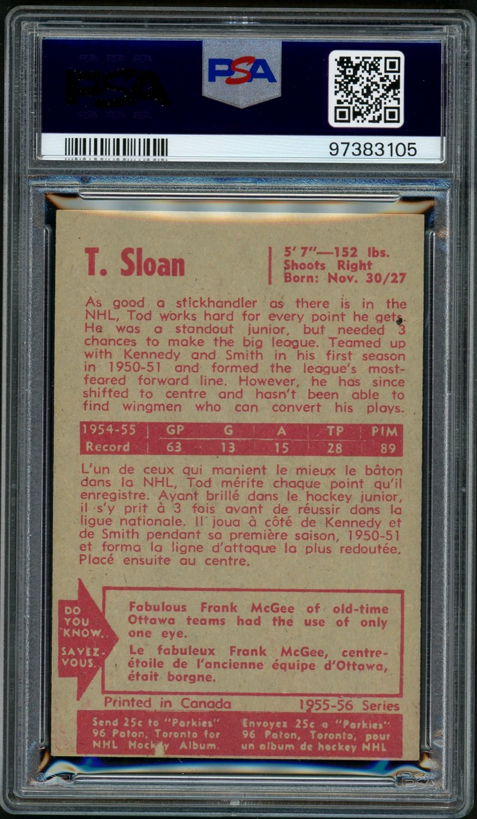 Super clean card of Sloan, a goal scorer and somewhat forgotten top-line player who won a pair of Stanley Cups.