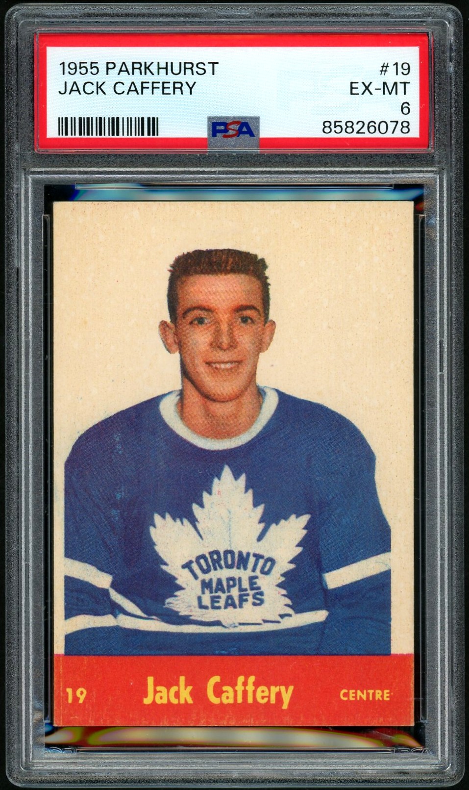 1955-56 Parkhurst #19 Jack Caffery RC (PSA 6)