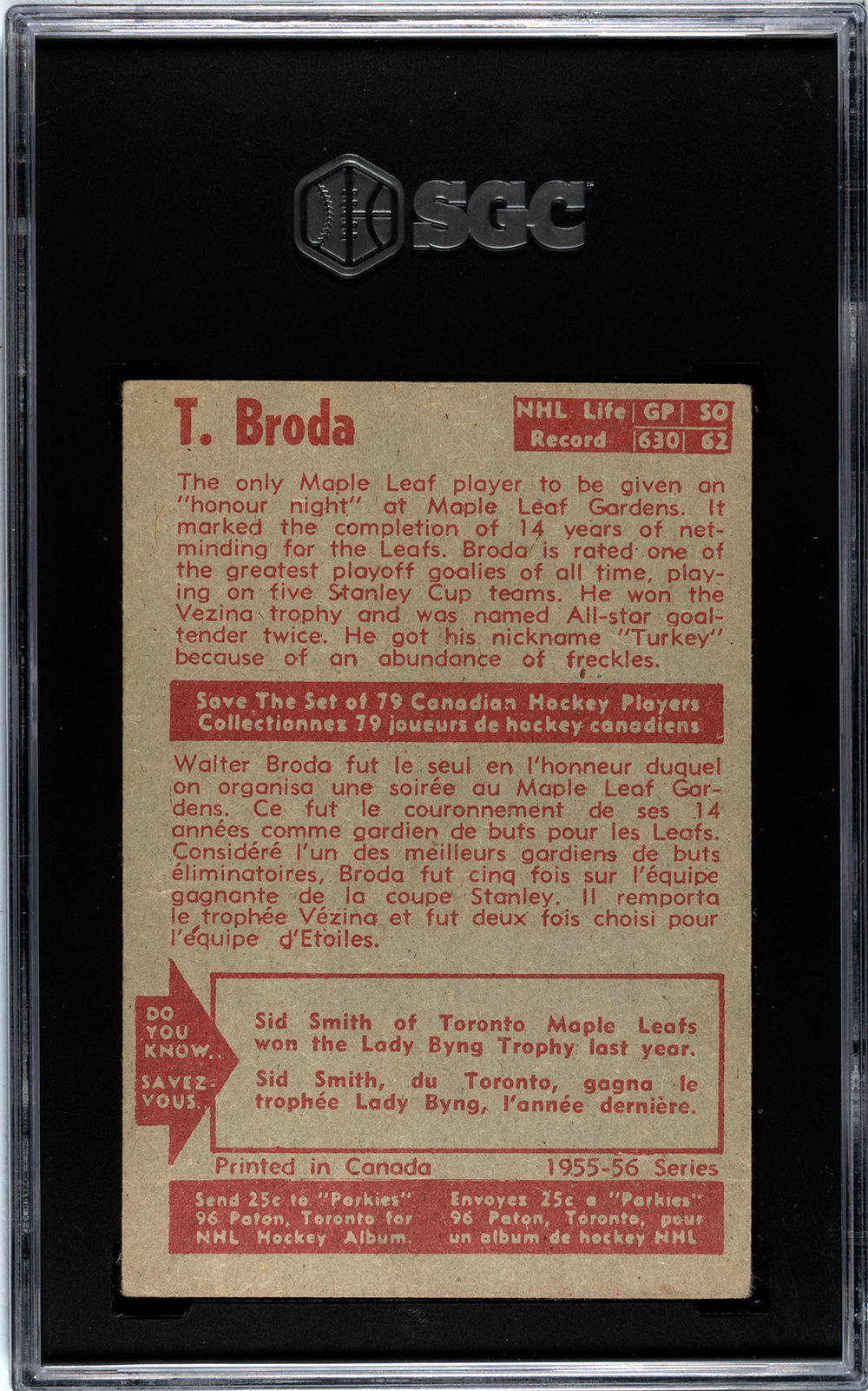 1955-56 Parkhurst #23 Turk Broda OTG (SGC 3.5)