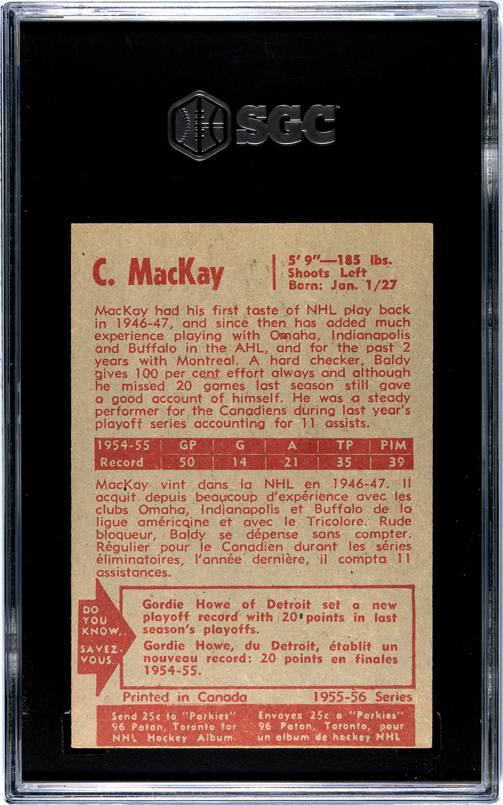 1955-56 Parkhurst #41 Calum MacKay (SGC 4.5)