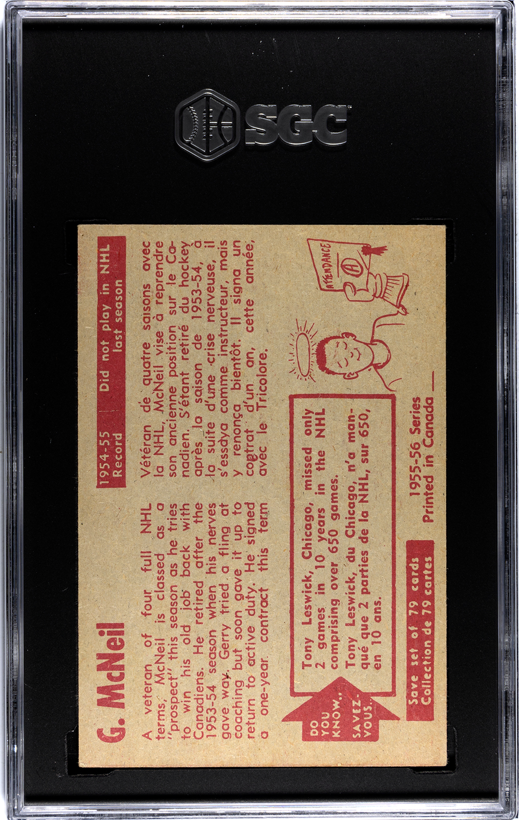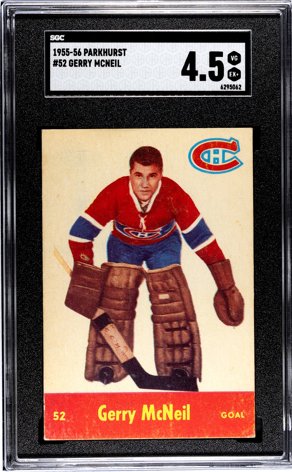 Clean goalie card featuring the Habs’ Gerry McNeil, who played in three all-star games, was a second-team all-star, and winner of one Stanley Cup.