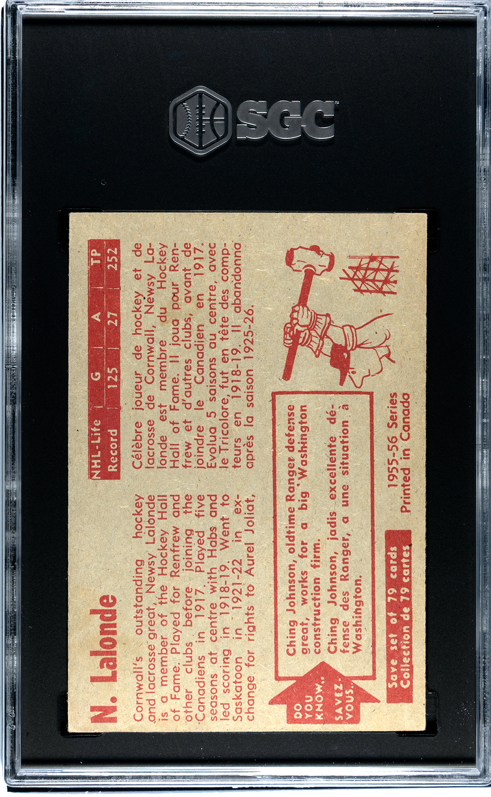 1955-56 Parkhurst #55 Newsy Lalonde OTG (SGC 6)