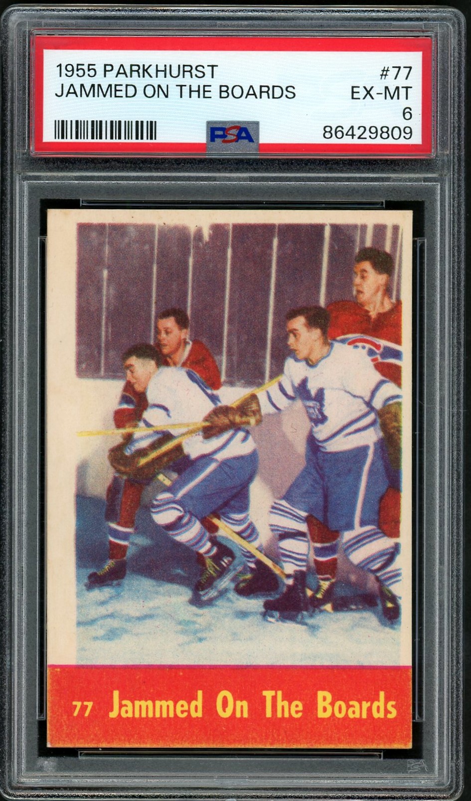 Superb action shot of HOFer’s Jean Beliveau and Doug Harvey in a “jamming session” with the Parker MacDonald and Tod Sloan.