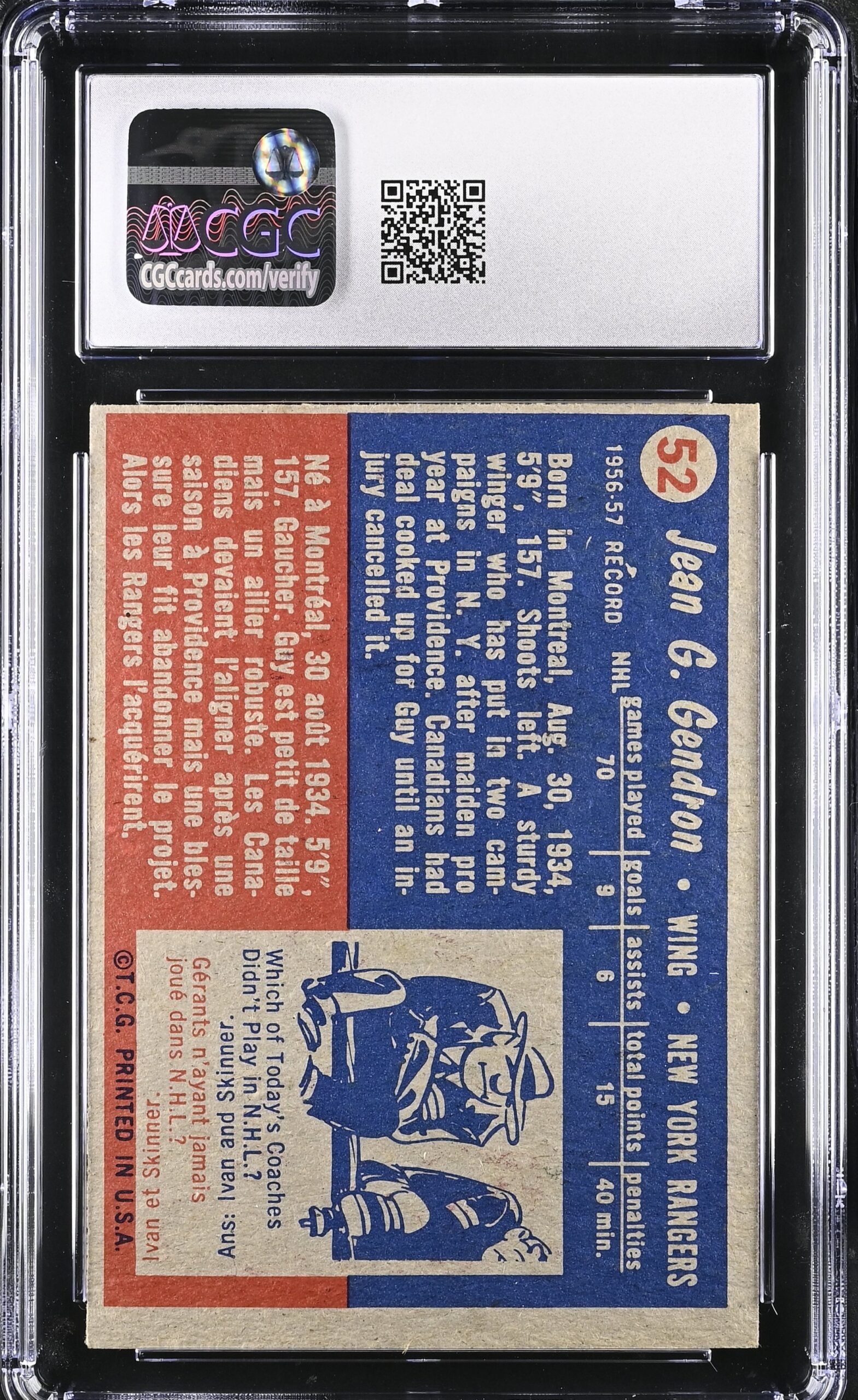 Sharp rookie card of long-time NHLer, Jean Guy-Gendron.
