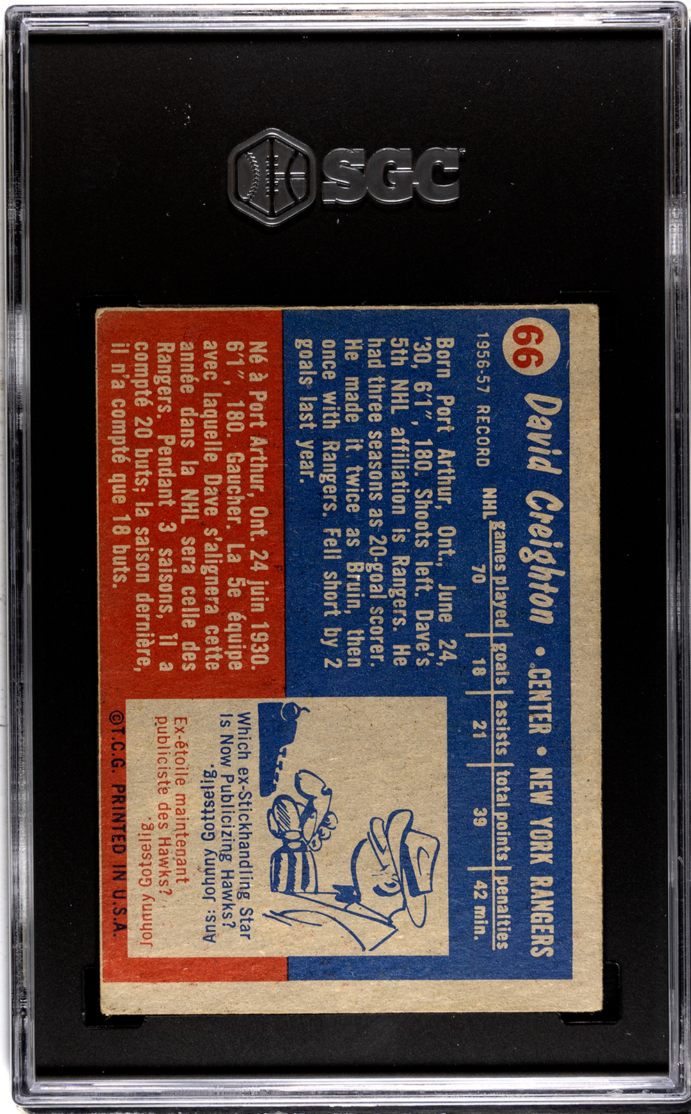 Last card in the set, featuring the Rangers’ Dave Creighton, father of NHLer, Adam.