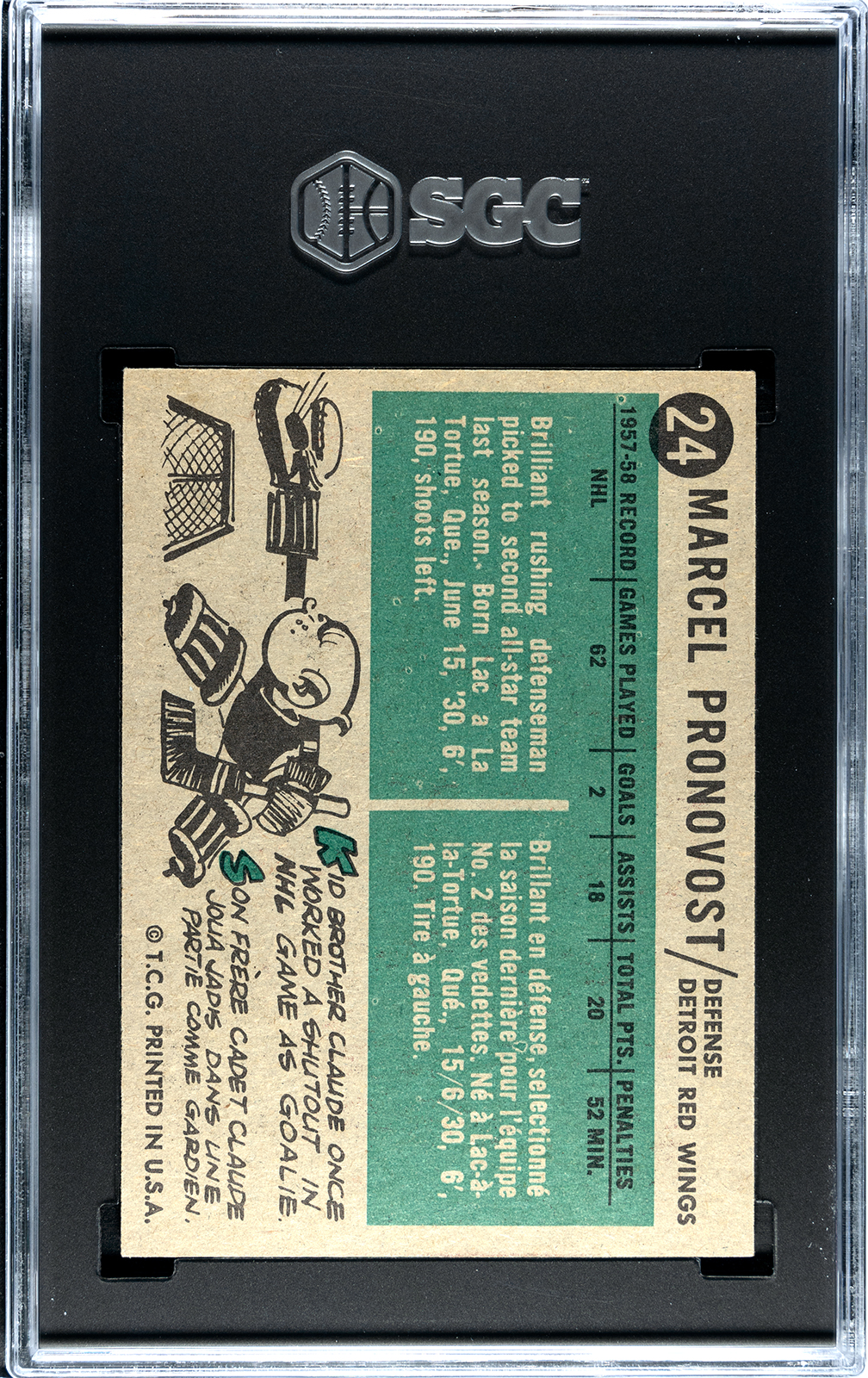 Sharp example of HOFer Pronovost’s 58 Topps card.