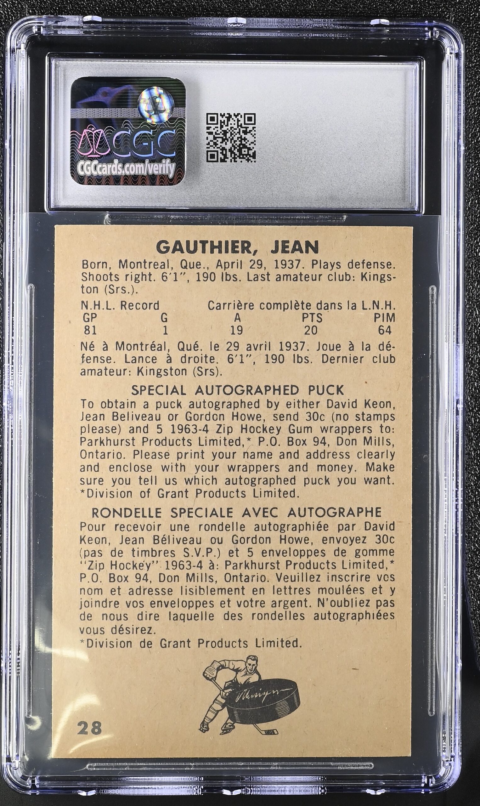 1953-54 Parkhurst #84 Gerry Couture (PSA 4)