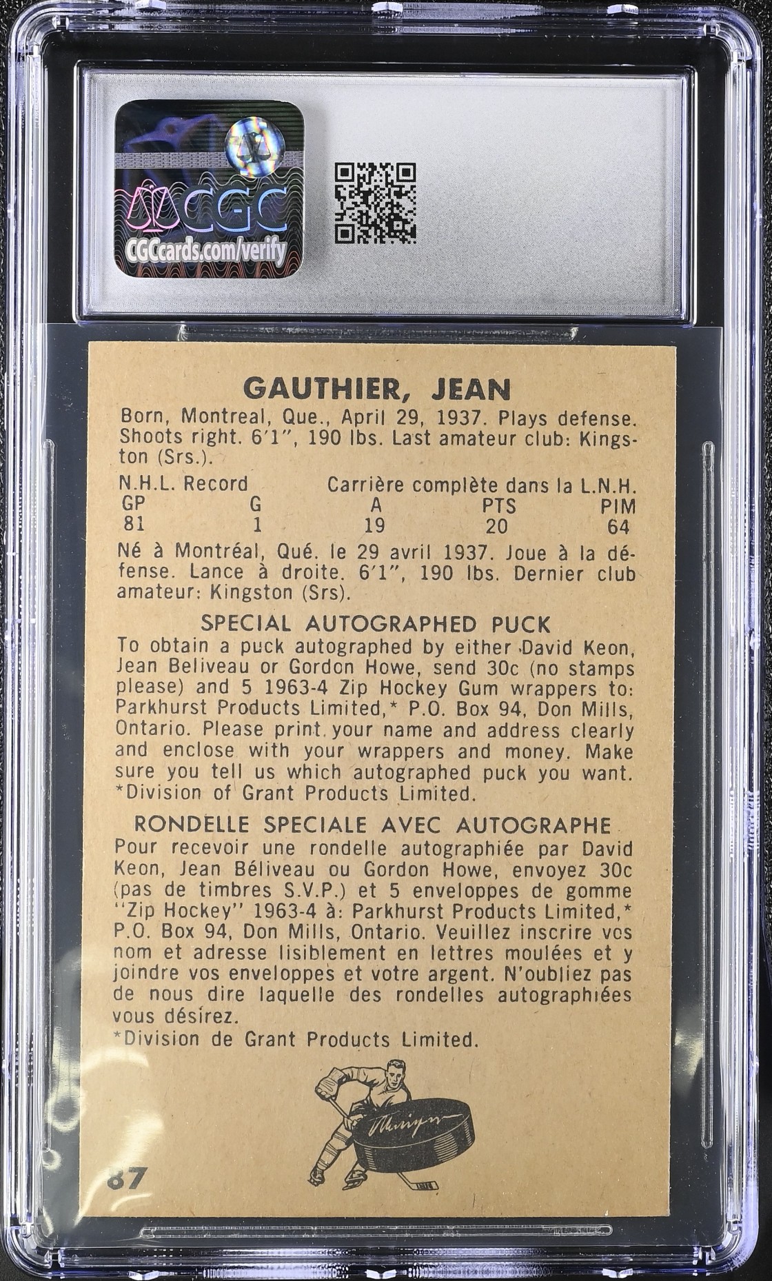 Second rookie card (in the set) of the Habs’ Jean Gauthier.