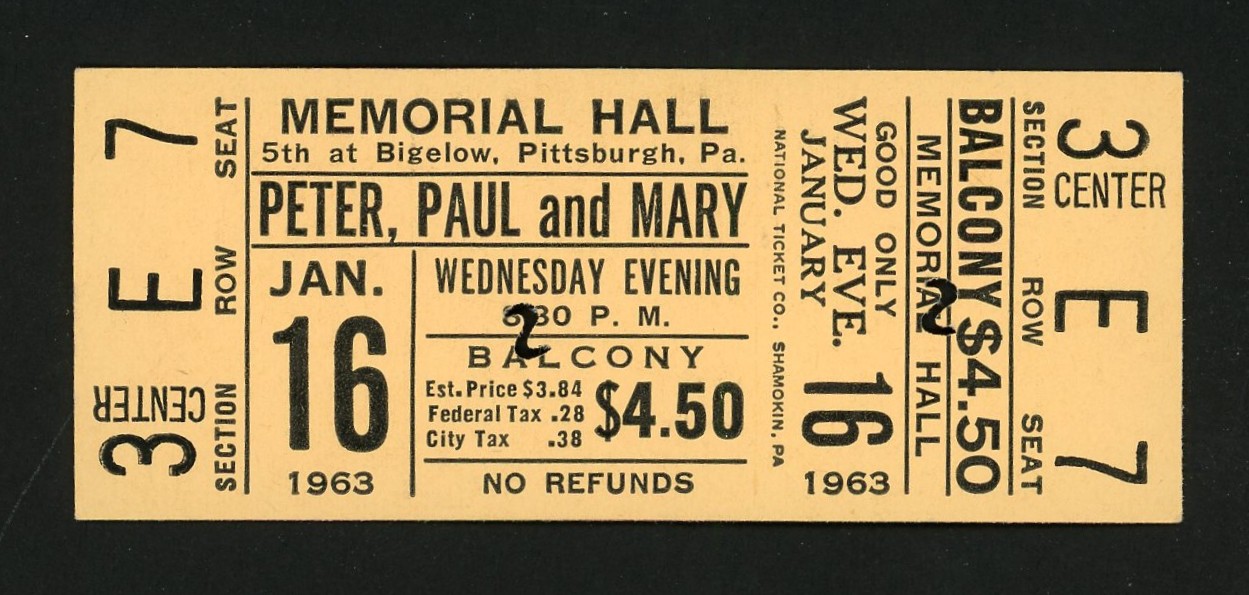 1963 – Peter, Paul & Mary – Pittsburgh, PA