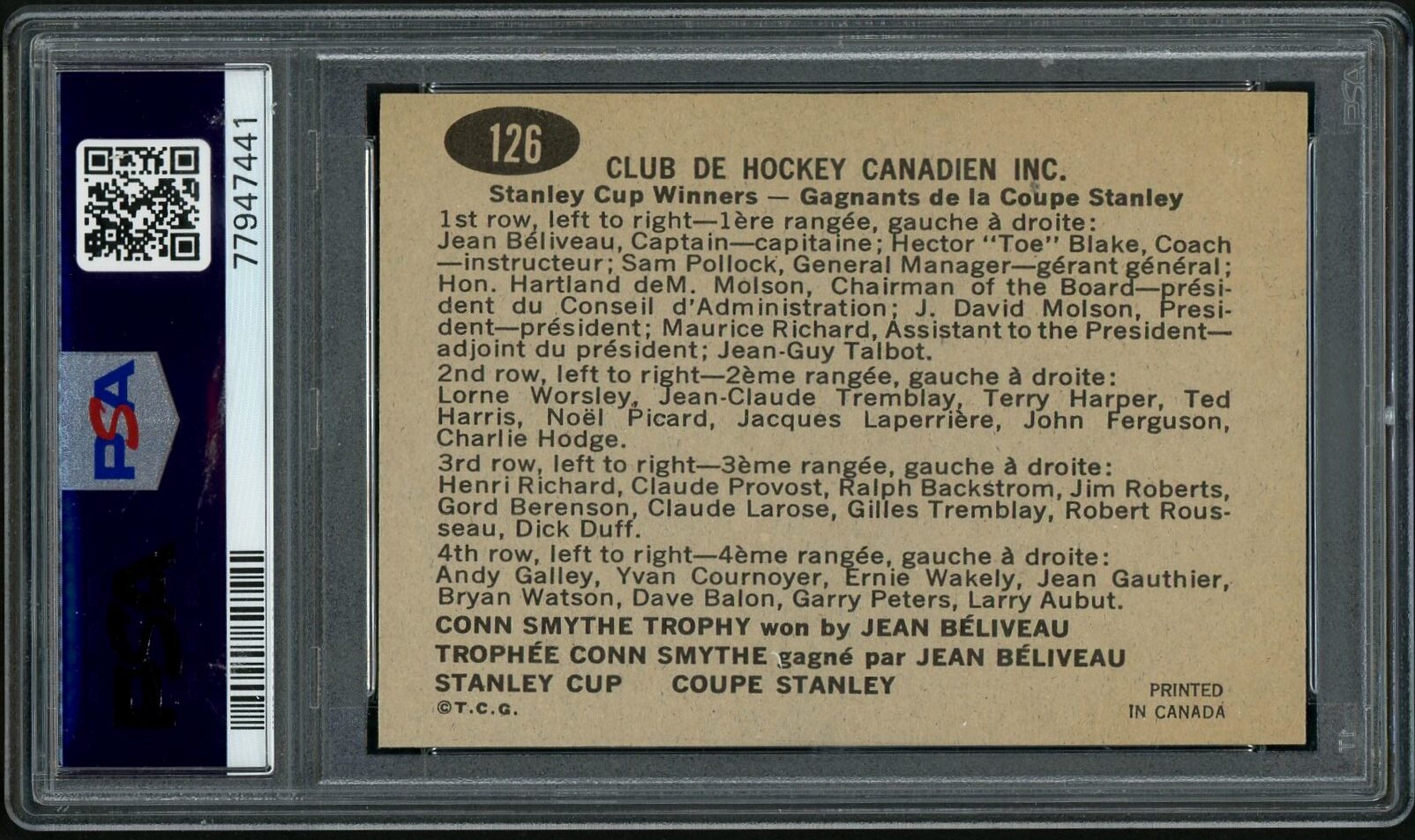 Clean, high-grade, short-print Montreal Canadiens team card, with “only” 10 HOFers in the photo.