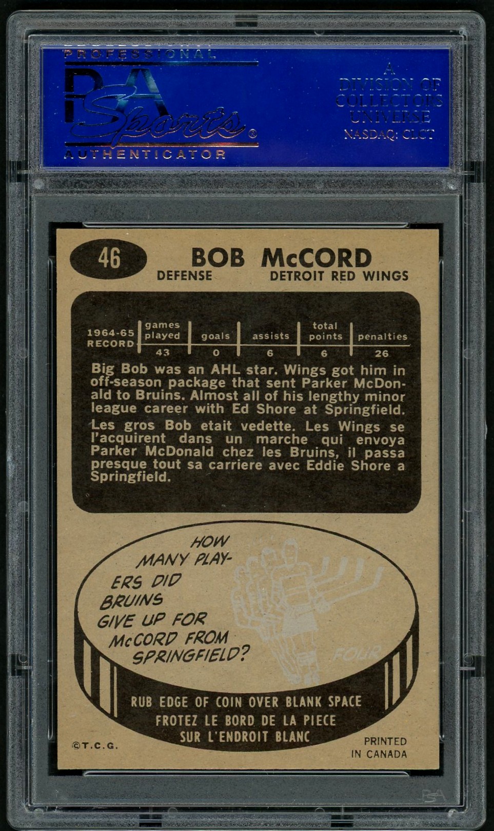 McCord had a long pro career, find great success in the minors where he won four AHL titles (three in a row with Springfield) and one WHL title. In between he would also play 316 NHL games.