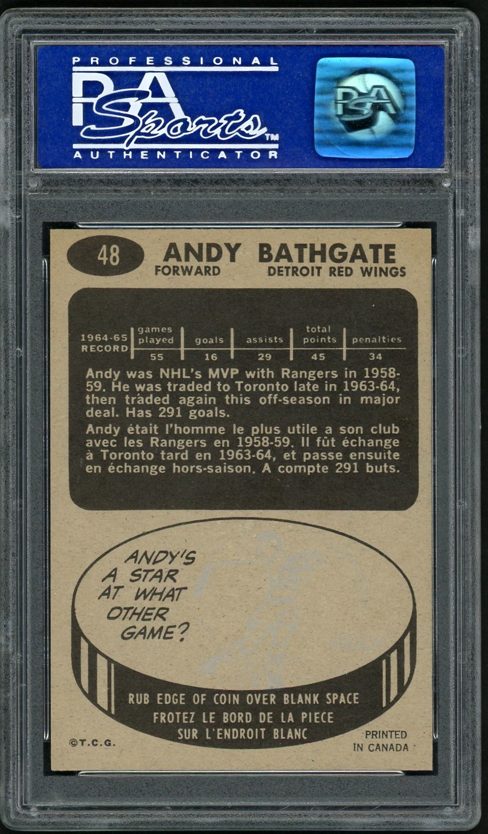 HOFer Bathgate was a four-time all-star (twice a first team pick), and a league MVP (1959). He led the league in scoring once and assists twice and won a Stanley Cup with Toronto in 1964. He would also win multiple minor league titles, one in the AHL and two in the WHL with the Vancouver Canucks.