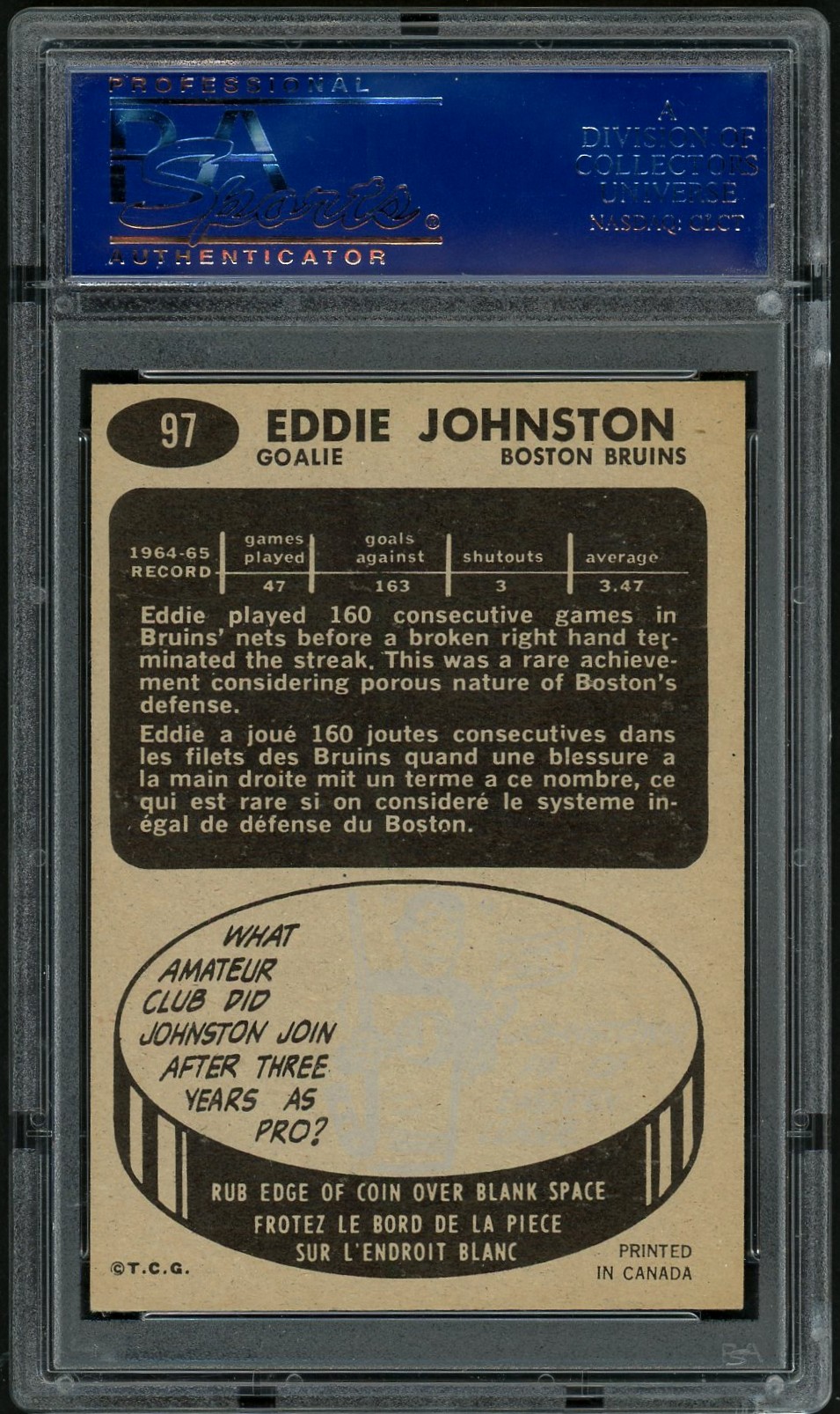 Johnston was a long-time NHLer, first as a goaltender who won two Stanley Cups with Boston, then as a coach and GM. He spent 53 years in the NHL and has his fingerprints on a number of franchises, mainly Pittsburgh.