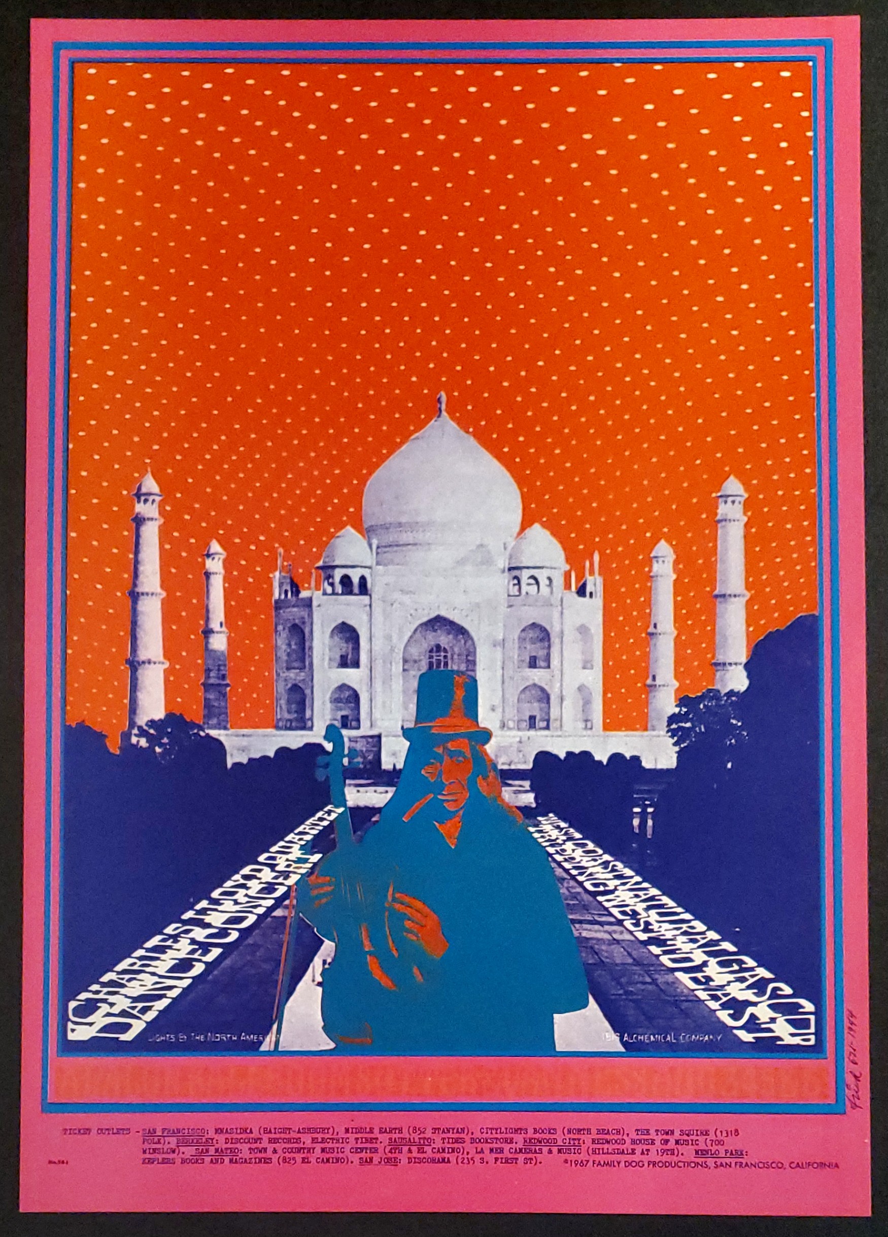 This is gorgeous 2nd print by artist Bob Fried for an Avalon show in August of 1967 featuring jazz great Charles Lloyd and his quartet (with Jack DeJohnette and Keith Jarrett) and West Coast Natural Gas Co. Lloyd was an early practitioner of “world music” incorporating rhythms and instruments from diverse cultures. He would go on to tour and record with the Beach Boys while actively expanding his own recordings. West Coast Natural Gas Co. was a Seattle-based psych band who would disband in 1968.