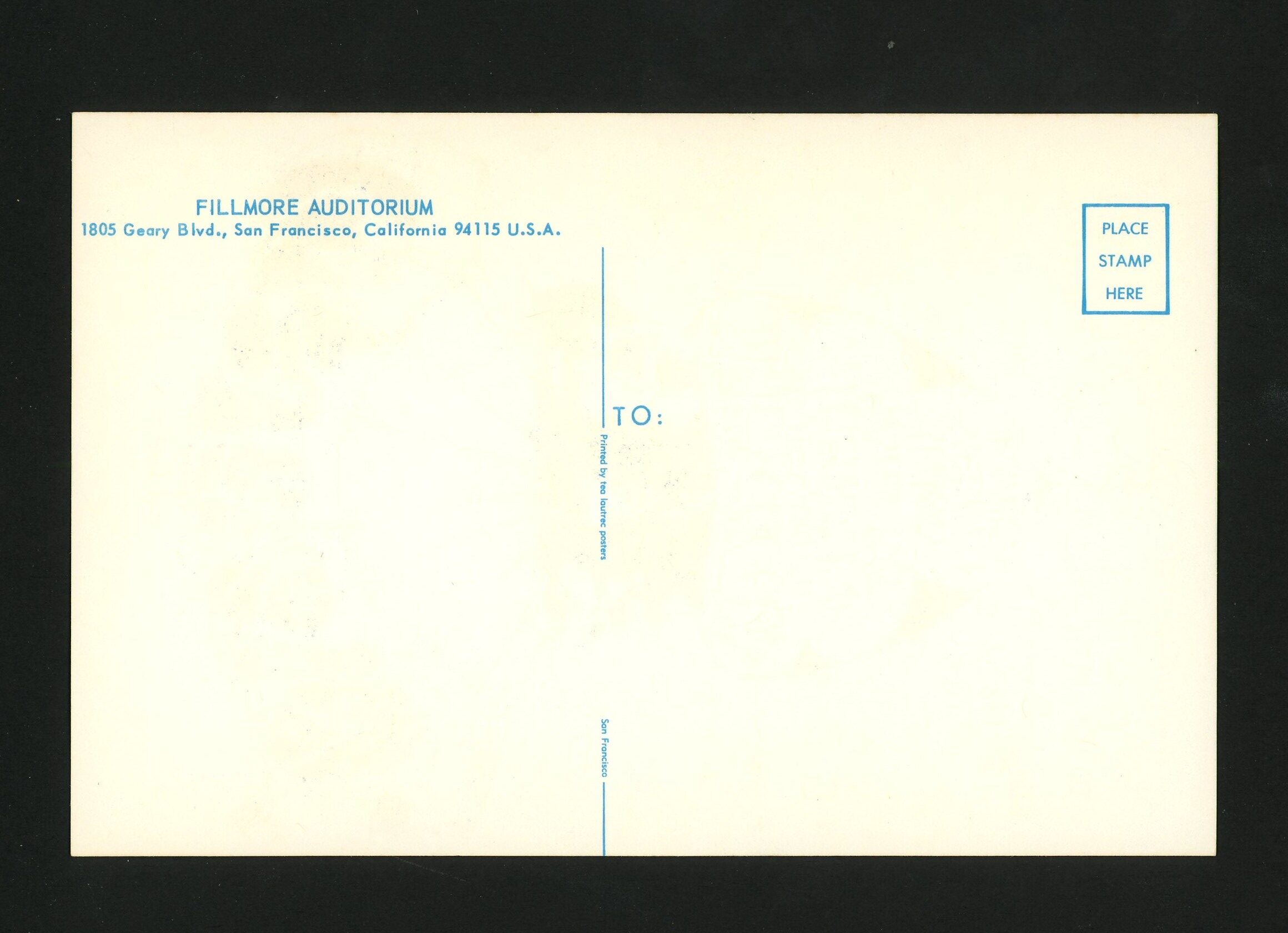 England’s power trio Cream, with Eric Clapton, Ginger Baker and Jack Bruce, were at the peak of their success when they played the Fillmore and Winterland venues in San Francisco here in March of 1968. Supporting acts included Jeremy and the Satyrs and Blood, Sweat and Tears. The poster/card – BG-110, was designed by Stanley Mouse and was printed only once, prior to the concert. Note: the red ink marks are common and were part of the original printing.