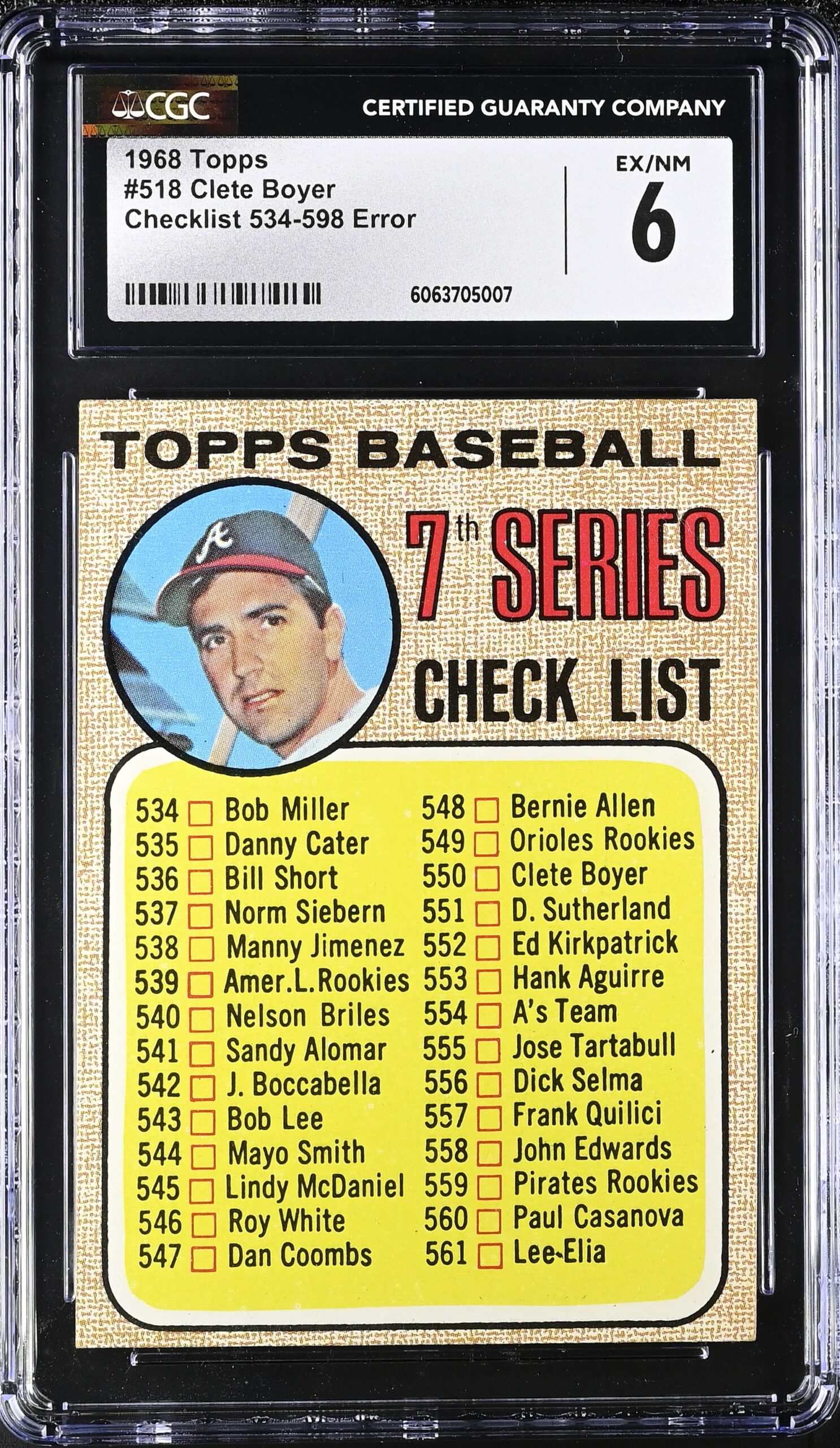 Clean, high number, unmarked, error checklist featuring Clete Boyer.