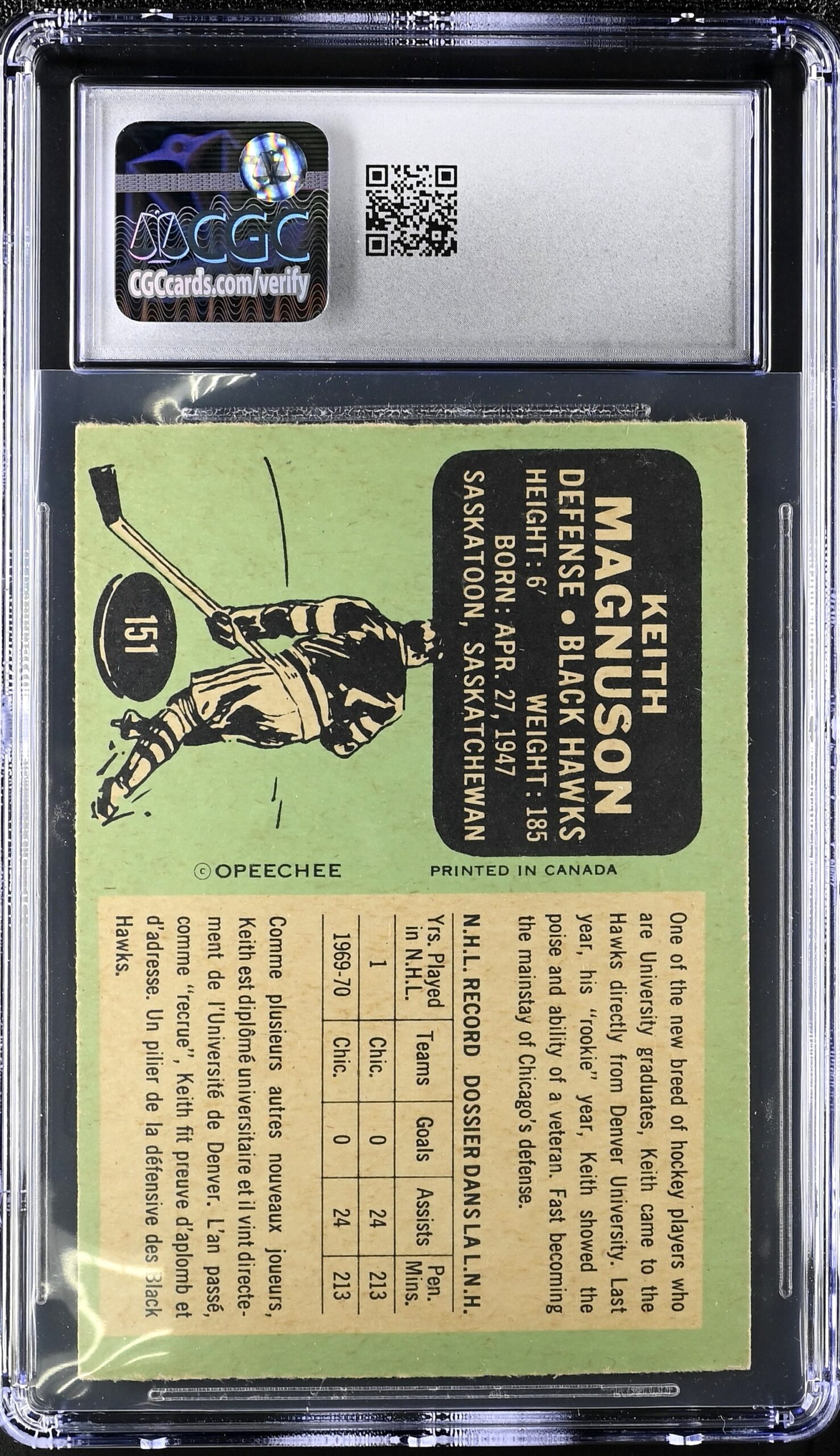 Clean rookie card of popular Black Hawks defenseman, Kieth Magnuson.