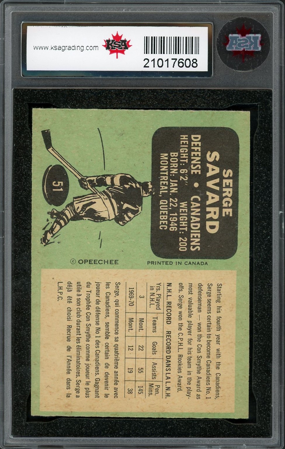 Higher grade 2nd year card of HOF defenseman Serge Savard.