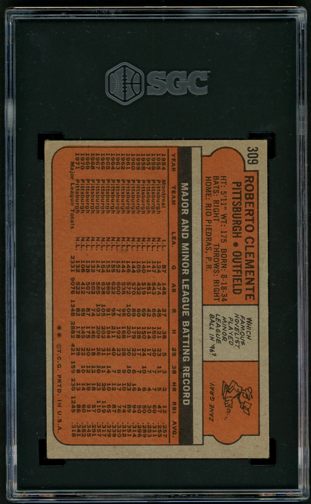 HOFer Clemente towards the tragic end of his illustrious HOF career. Clean mid-grade card that has seen a bump in recent popularity.