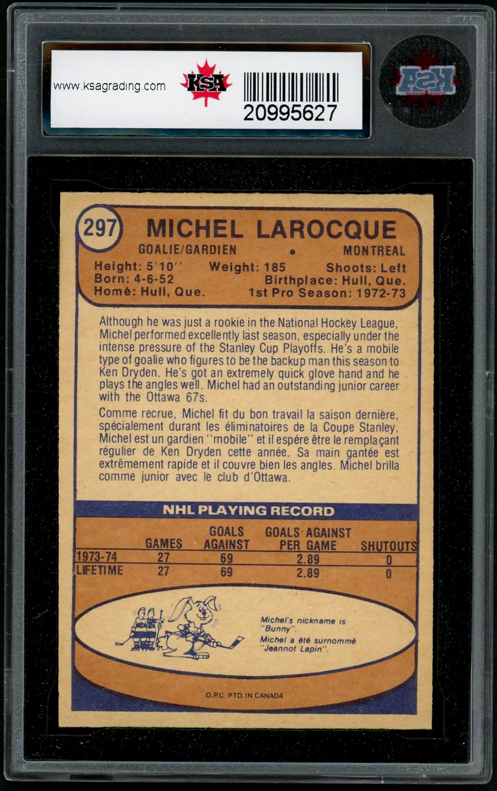 High-grade rookie card of “Bunny” Larocque, who shared four Vezina Trophies (three with Ken Dryden) over the course of his career.