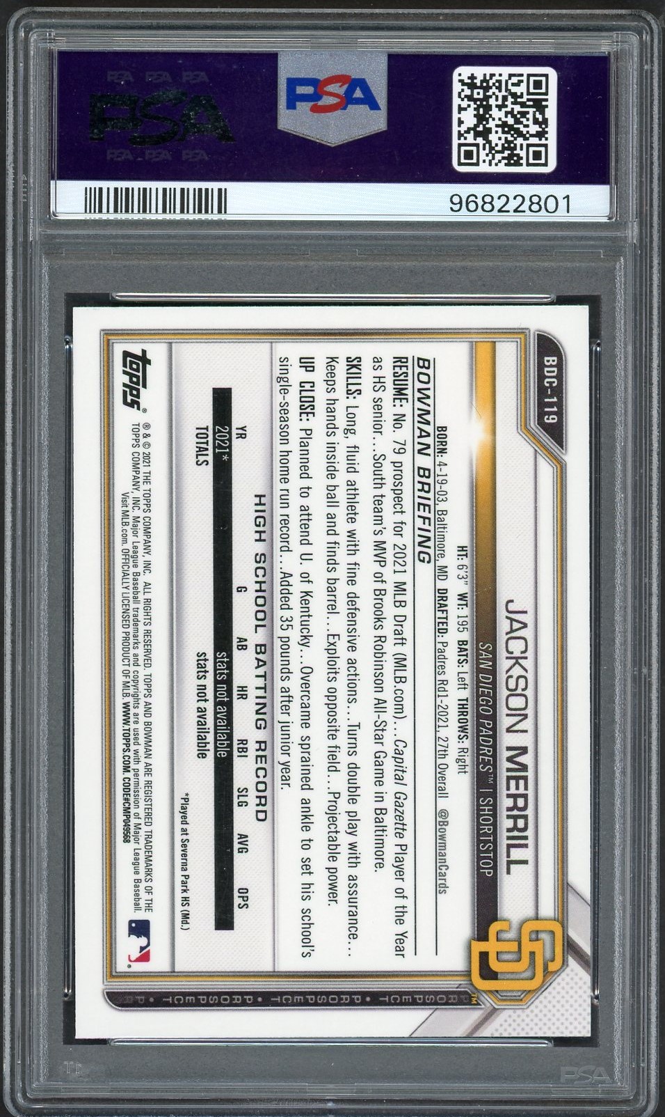 2021 Bowman Draft #BDC119 Jackson Merrill Chrome (PSA 9)
