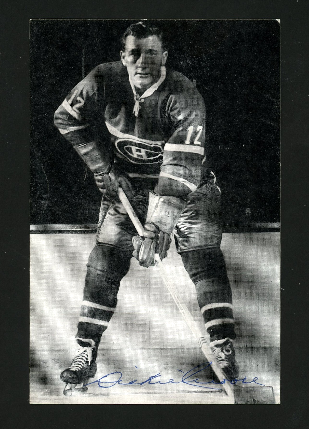 Signed by the Canadiens’ Hall of Famer in ballpoint pen, on a 3 1/2″ x 5 1/4″ photo postcard.