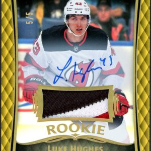 2023 Upper Deck Stature #34 Luke Hughes RC Premium Patch Auto Gold #5/5 NM